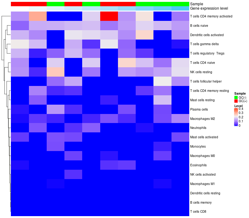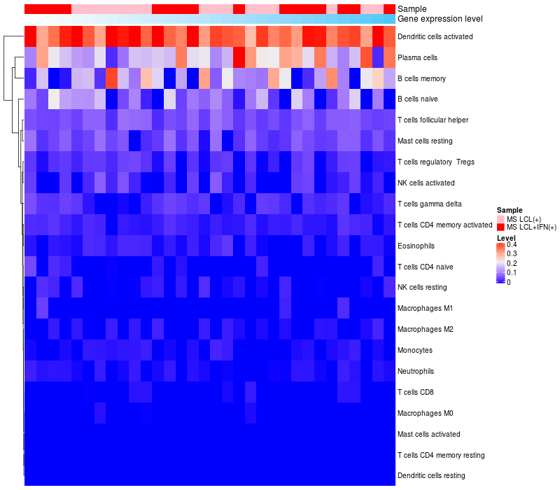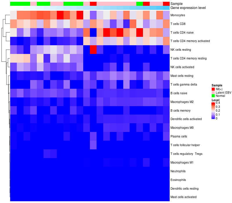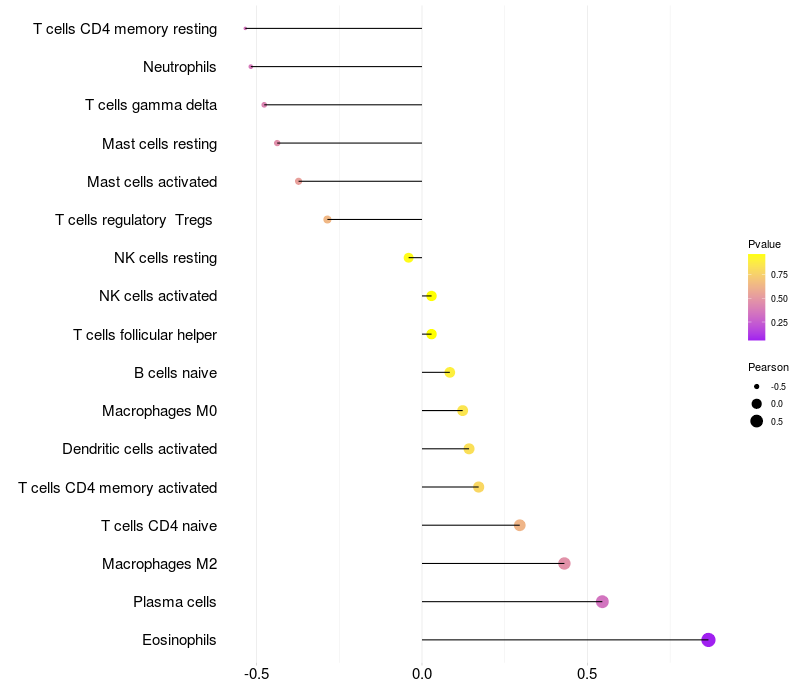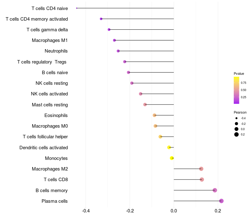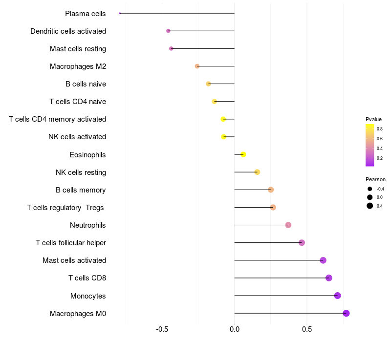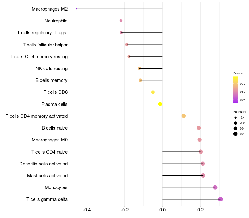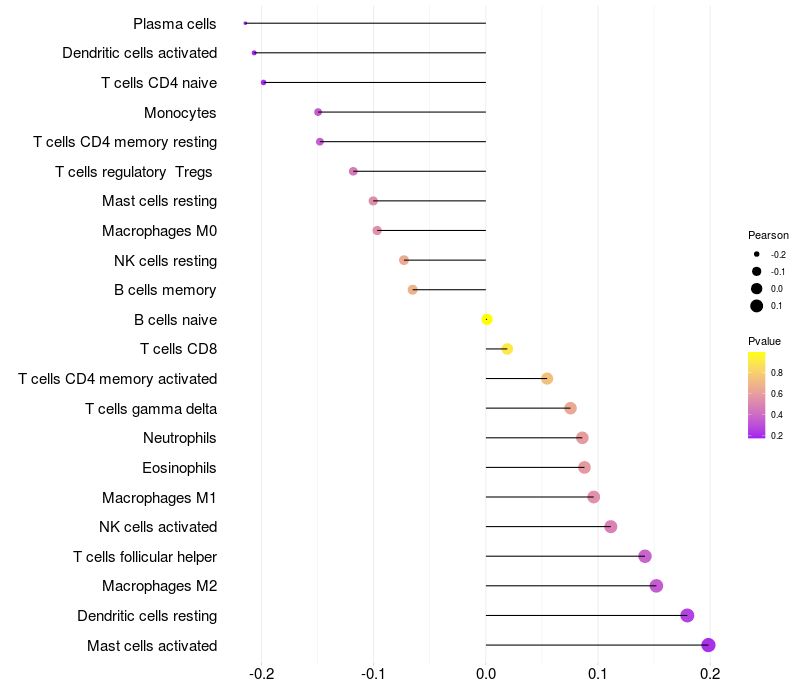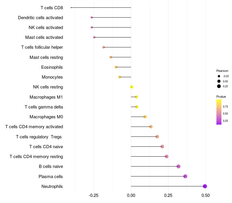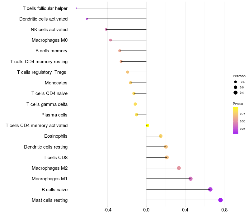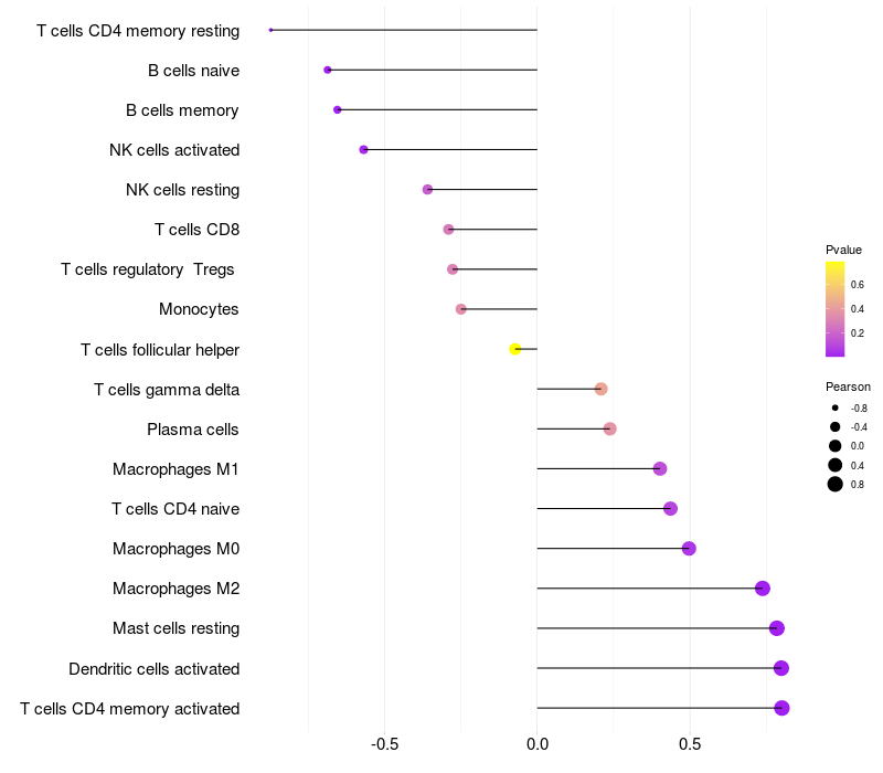 Lollipop of KCNIP4 expression and immune infiltrating cell level correlation result in EBV+ samples