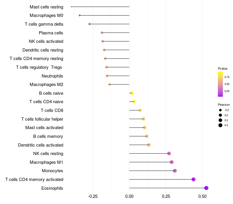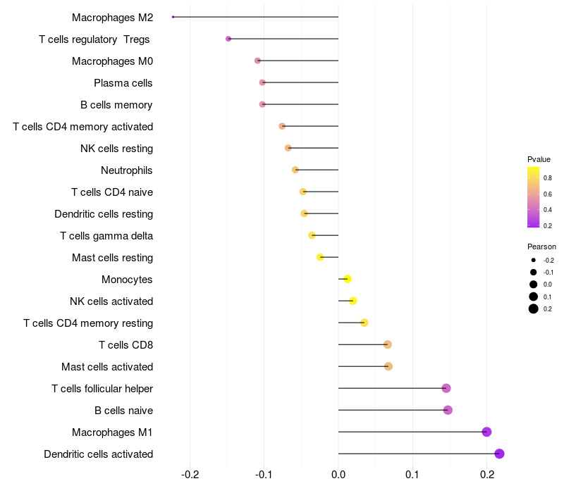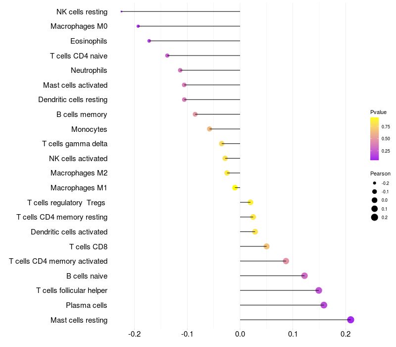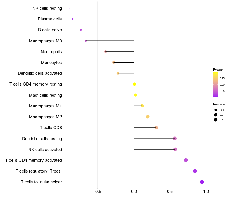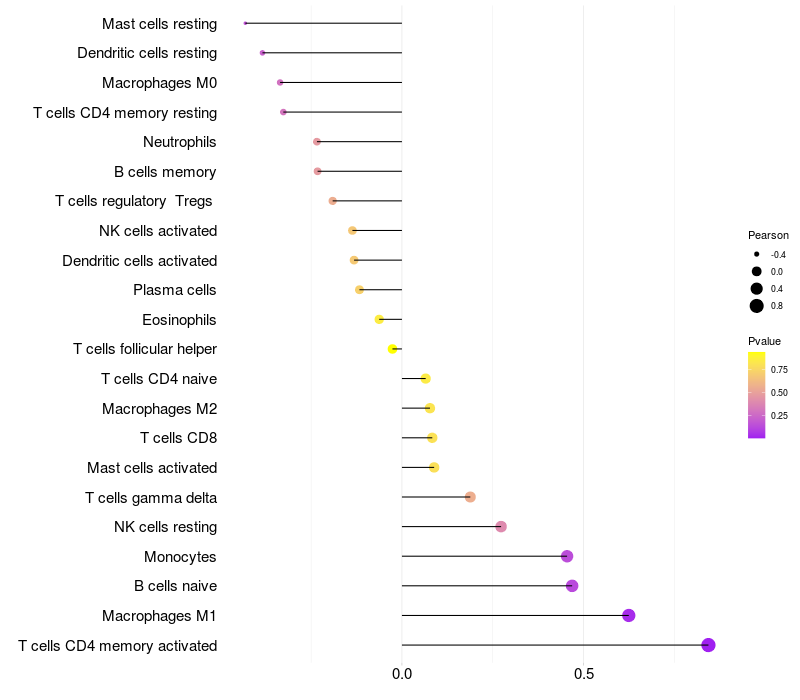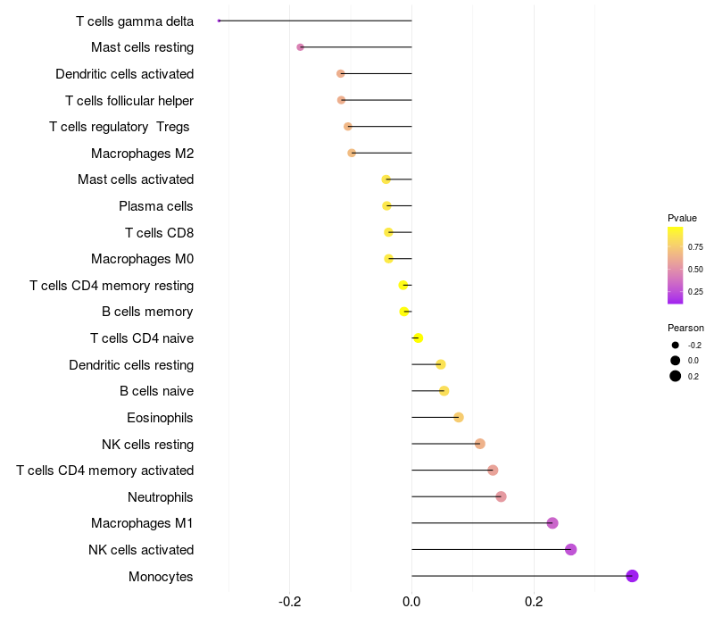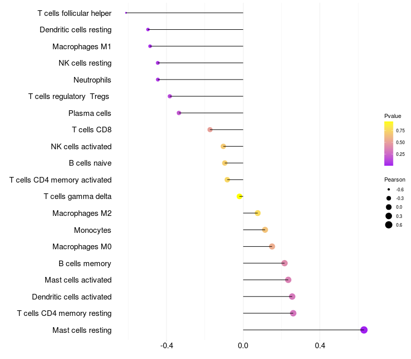 HeatMap of cell type fractions in all samples Lollipop of KCNK18 expression and immune infiltrating cell level correlation result in HPV+ samples