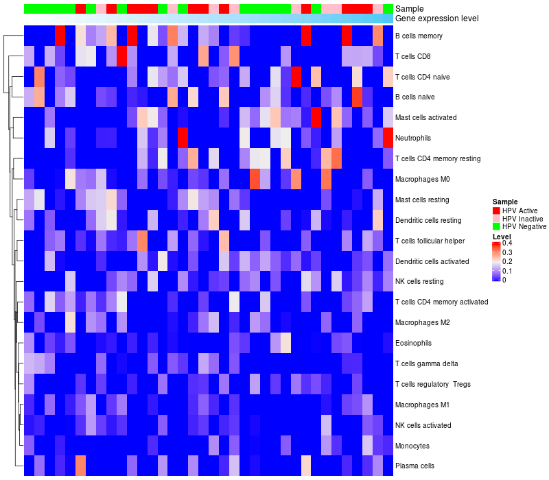 GSE55544 (GEO) Oropharyngeal squamous cell carcinoma 23 Oropharyngeal cancers HPV Active (11), Oropharyngeal cancers HPV Inactive (4), Oropharyngeal cancers HPV Negative (8)