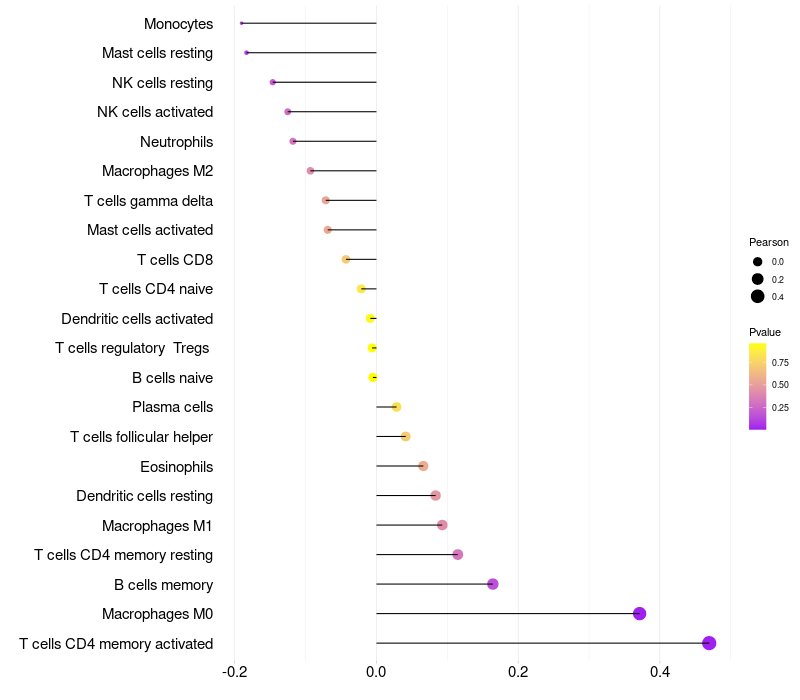 Lollipop of KCNV2 expression and immune infiltrating cell level correlation result in HBV+ samples