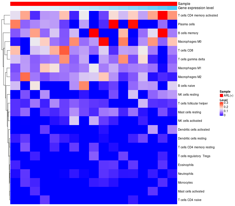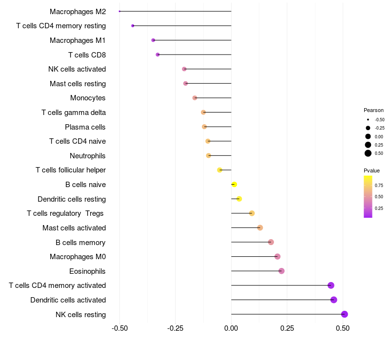 Relationship between gene expression and immune infiltrating cell level