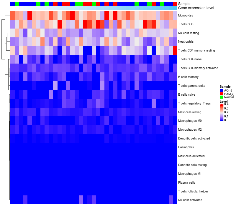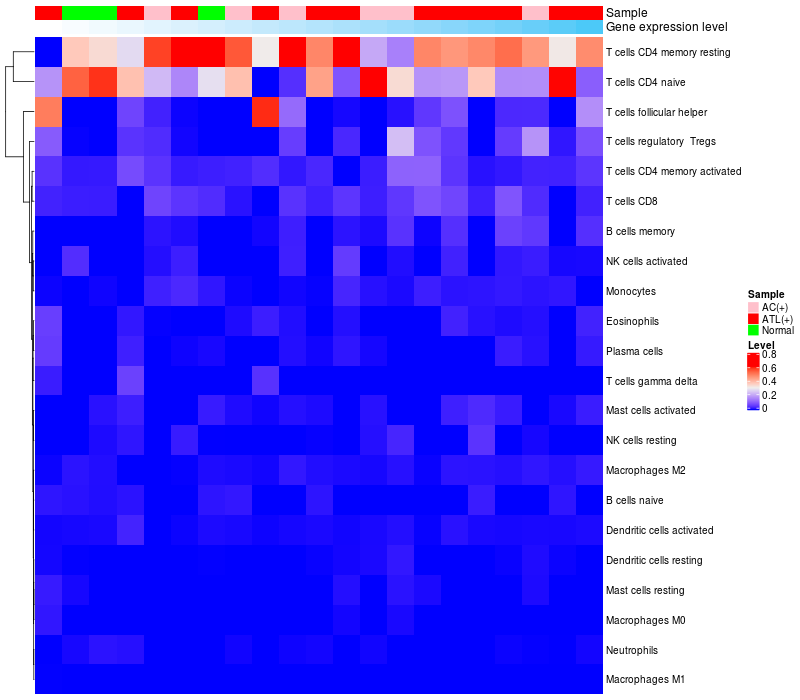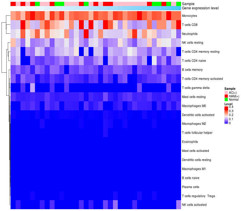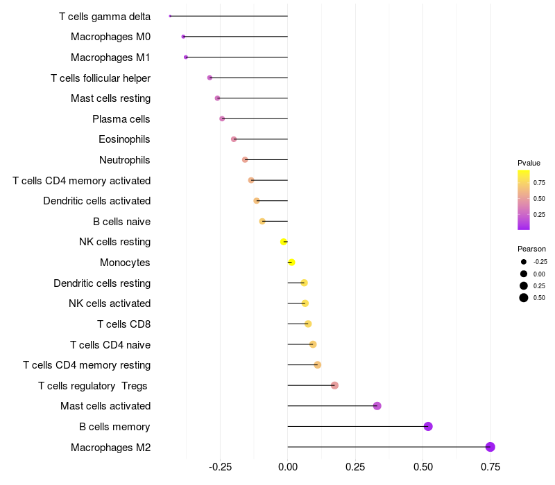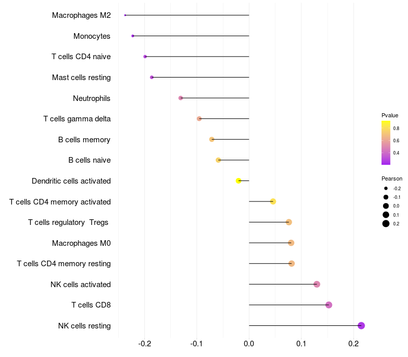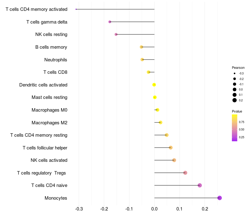 Lollipop of KIAA1755 expression and immune infiltrating cell level correlation result in HTLV1+ samples