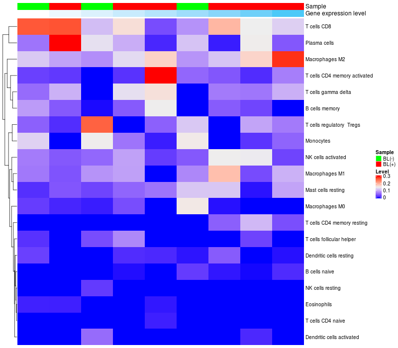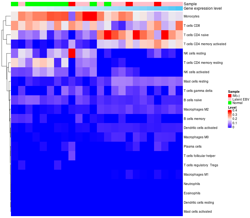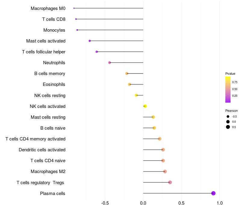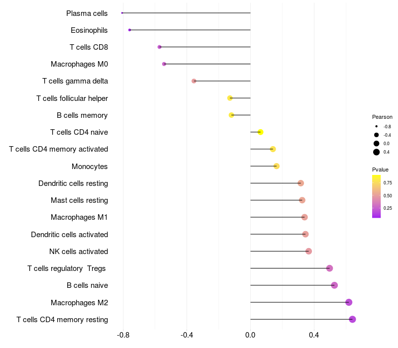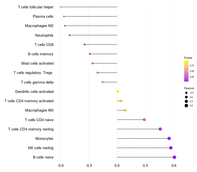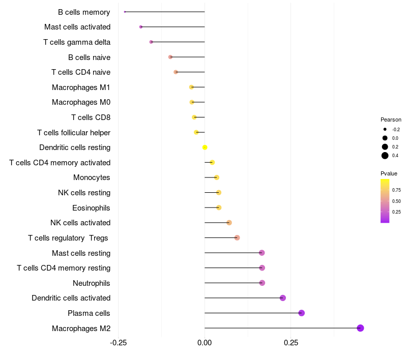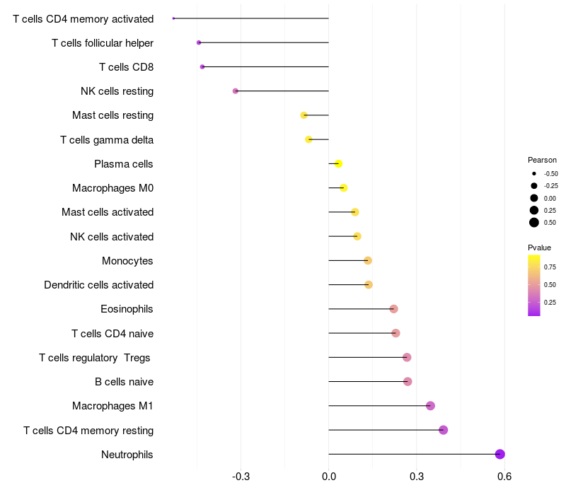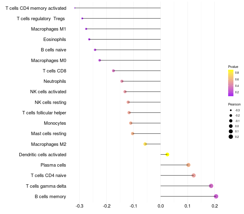 Lollipop of KIAA1958 expression and immune infiltrating cell level correlation result in EBV+ samples