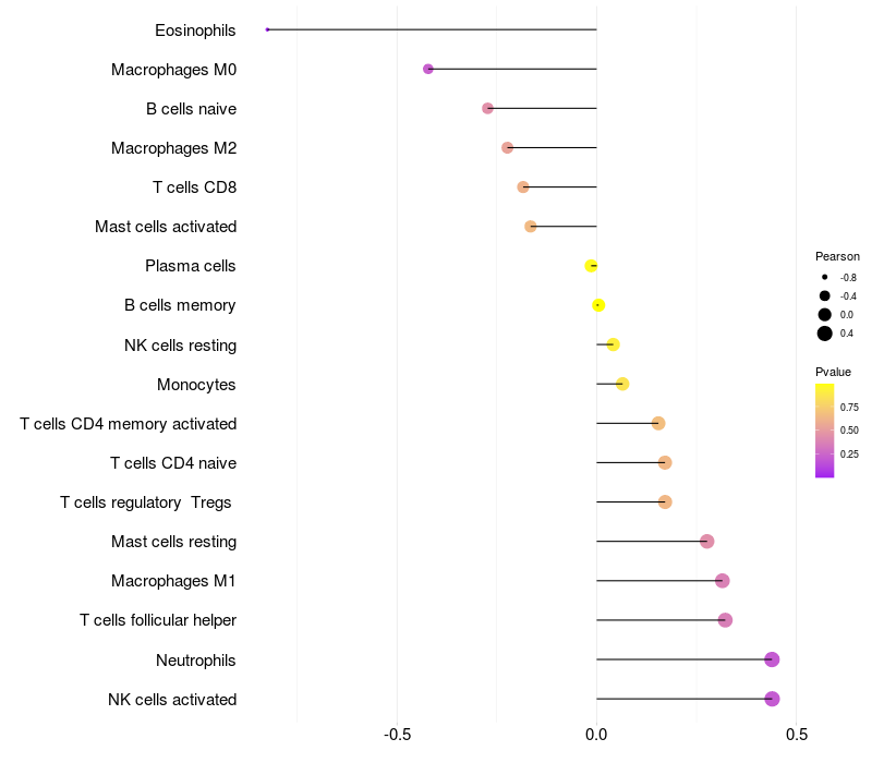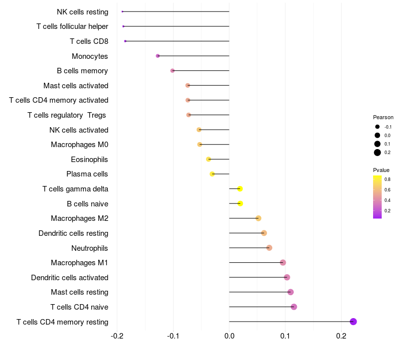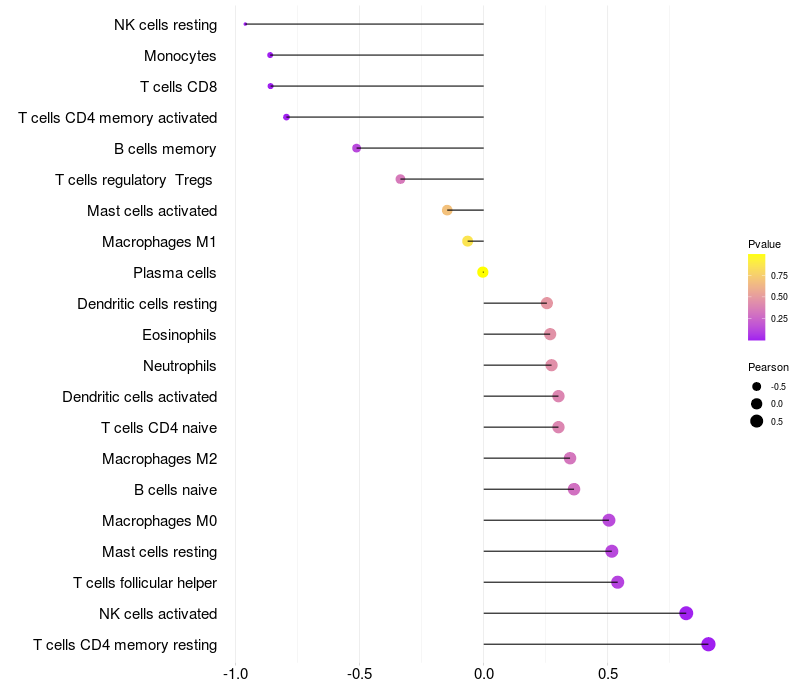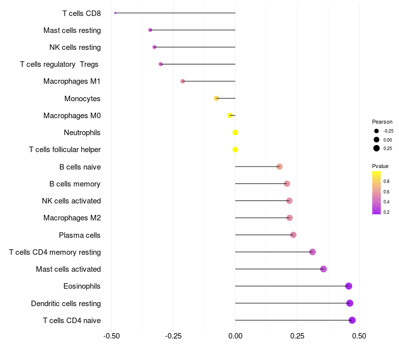 Lollipop of KIF13A expression and immune infiltrating cell level correlation result in HBV+ samples