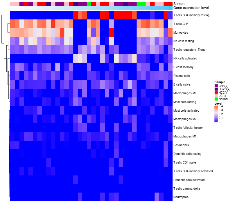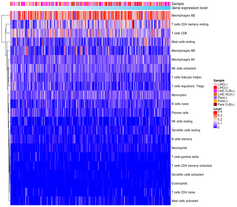 Liver hepatocellular carcinoma HCV (HBV+)(86), Liver hepatocellular carcinoma HCV (HBV-)(19), Liver hepatocellular carcinoma (HBV+)(209), Liver hepatocellular carcinoma (HBV+)(60), Paracancerous HCV (HBV+)(4), Paracancerous (HBV-)(28), Paracancerous (HBV+)(18) |