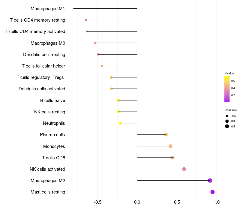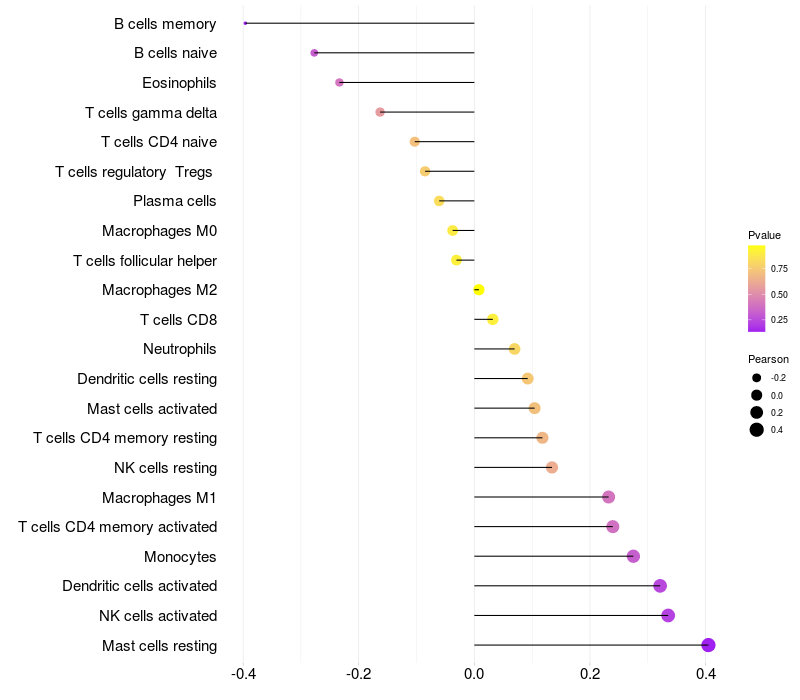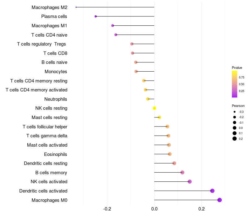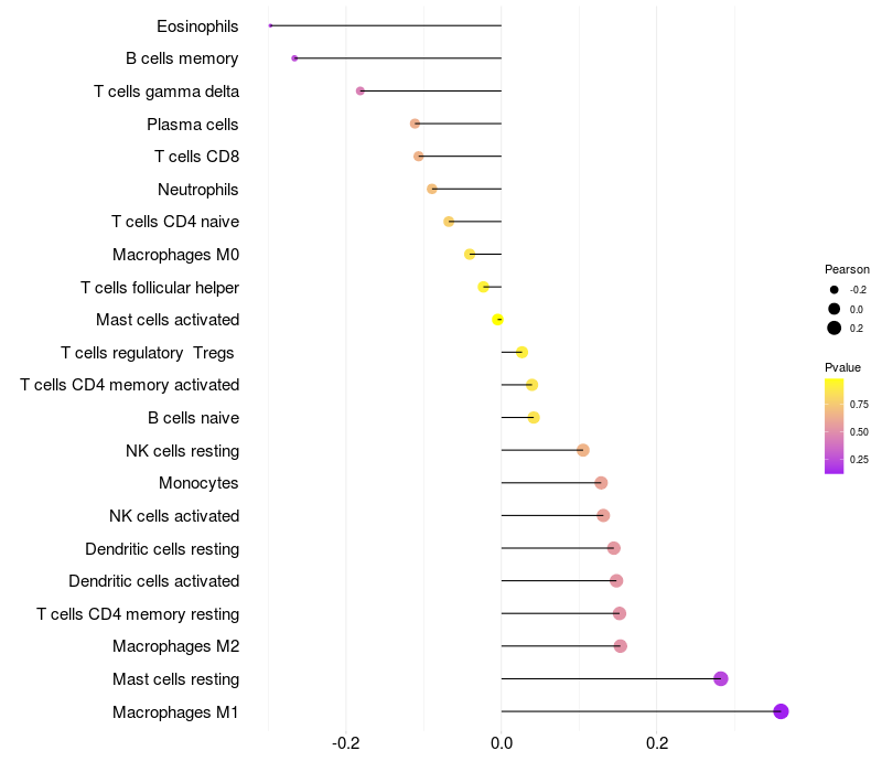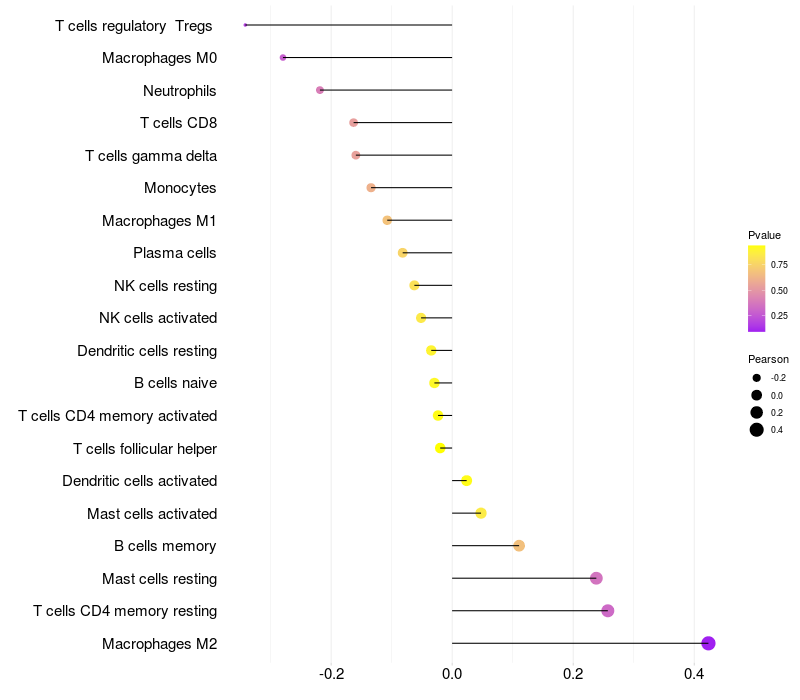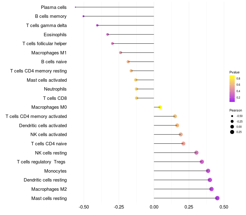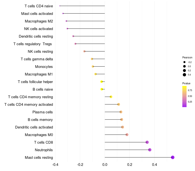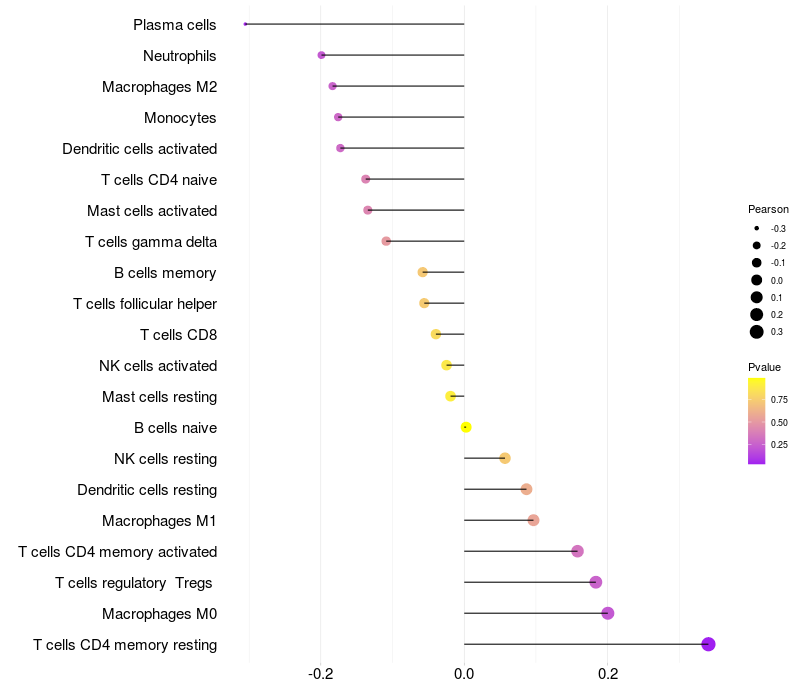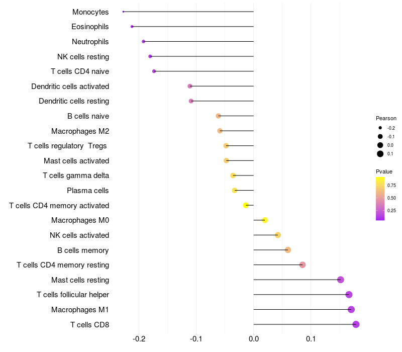 HeatMap of cell type fractions in all samples Lollipop of KITLG expression and immune infiltrating cell level correlation result in HPV+ samples
