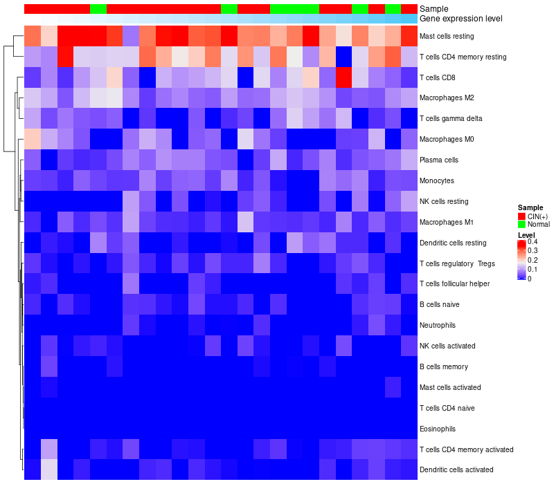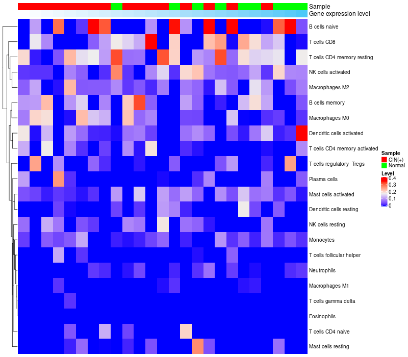 Normal (10), Cervical intraepithelial neoplasia (HPV+)(15) |