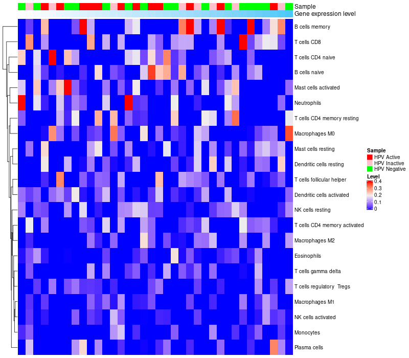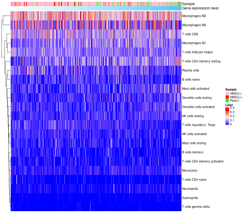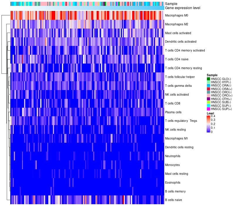 Head and Neck squamous cell carcinoma(HPV-)(483),Head and Neck squamous cell carcinoma(HPV+)(39),Paracancerous(HPV-)(44) |