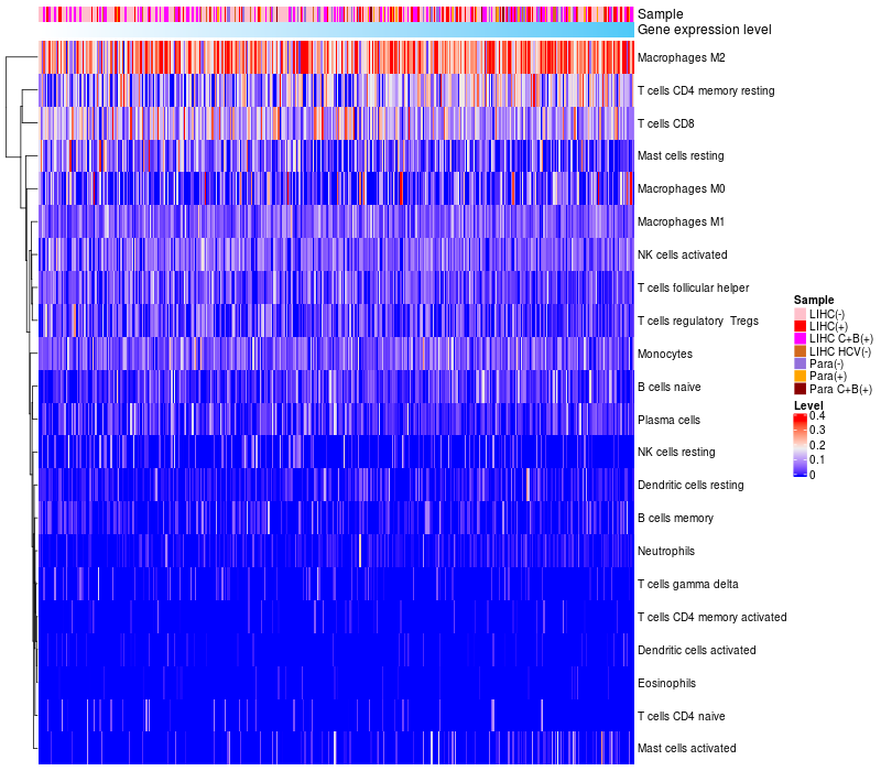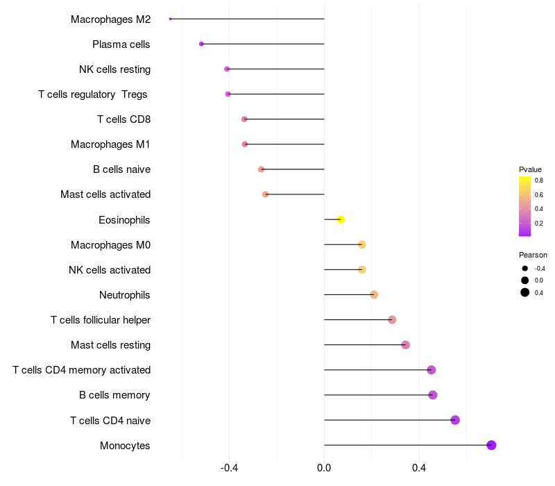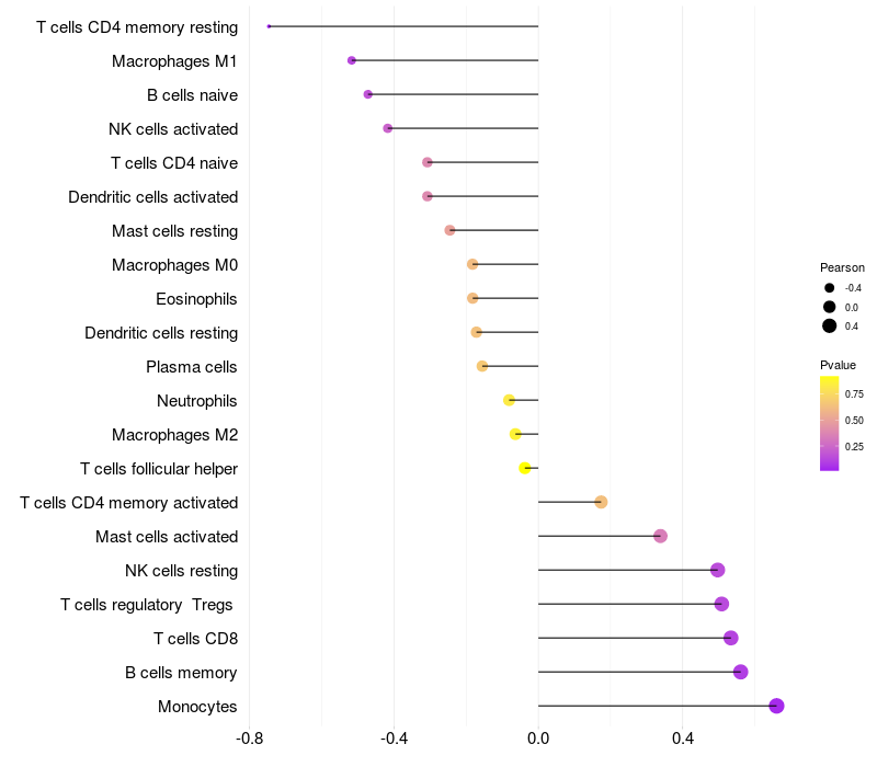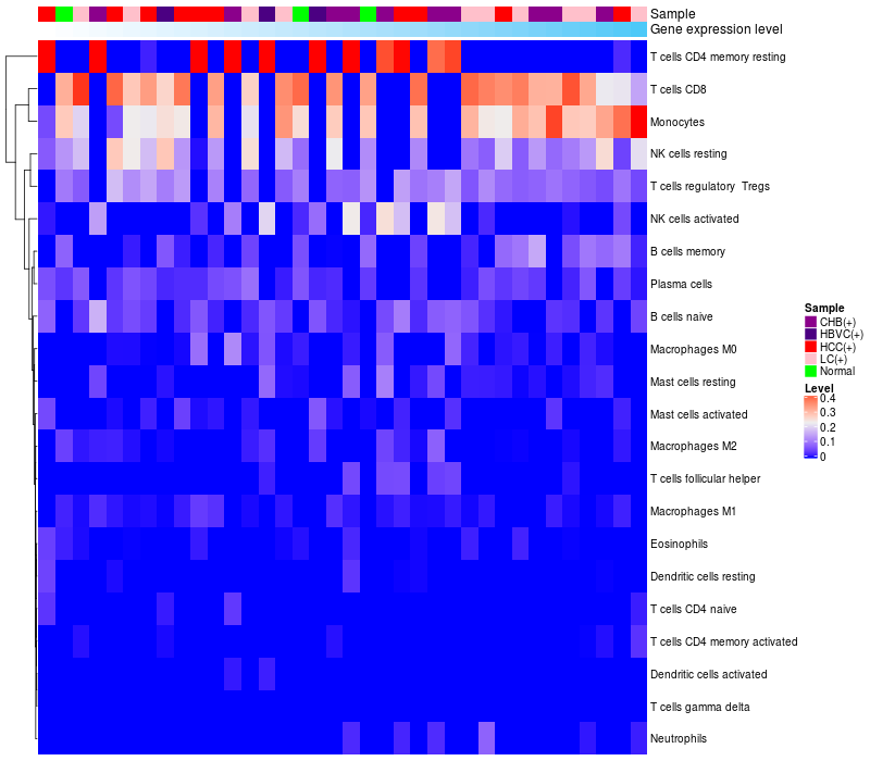 Relationship between gene expression and immune infiltrating cell level