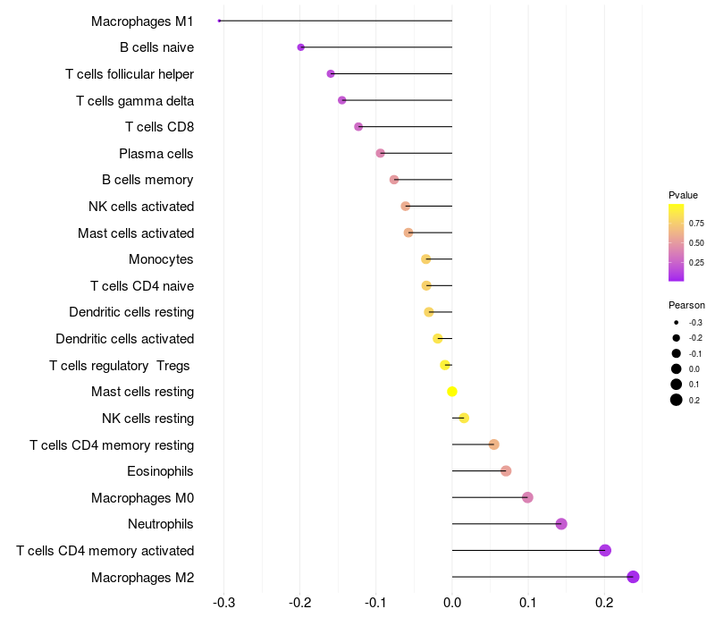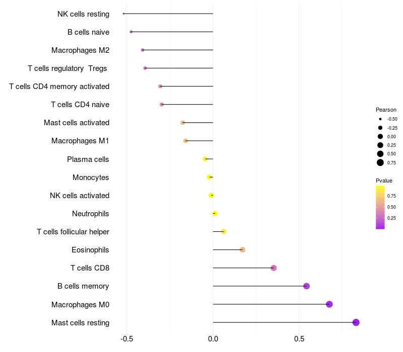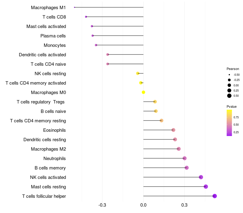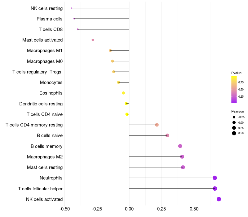 Lollipop of KLHL18 expression and immune infiltrating cell level correlation result in HBV+ Liver cirrhosis samples