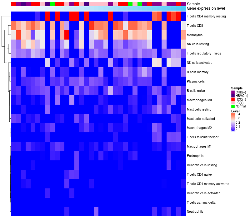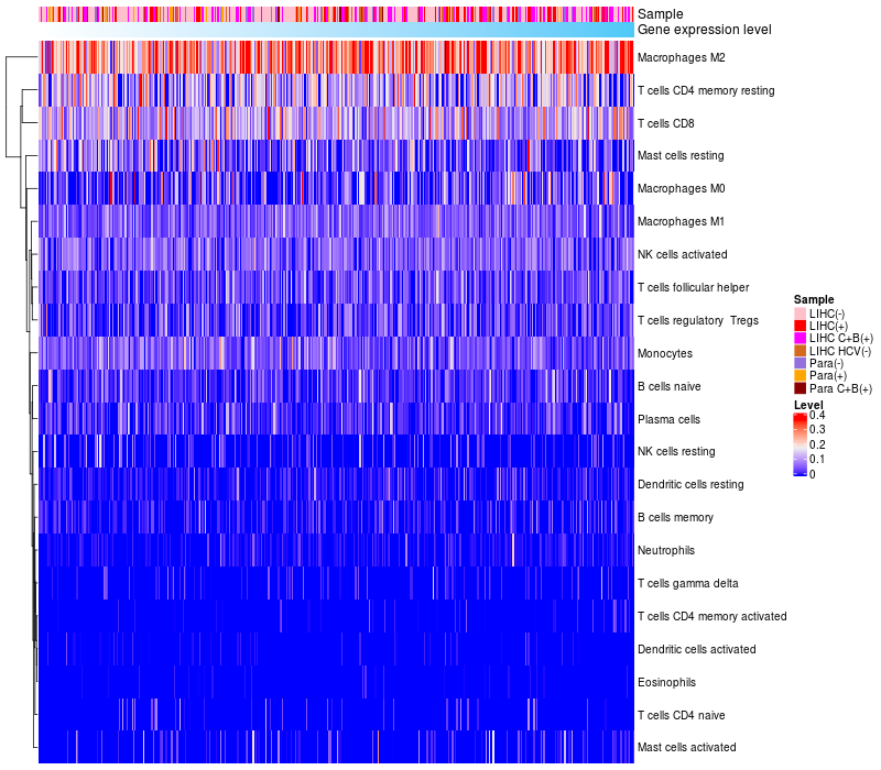 Liver hepatocellular carcinoma HCV (HBV+)(86), Liver hepatocellular carcinoma HCV (HBV-)(19), Liver hepatocellular carcinoma (HBV+)(209), Liver hepatocellular carcinoma (HBV+)(60), Paracancerous HCV (HBV+)(4), Paracancerous (HBV-)(28), Paracancerous (HBV+)(18) |