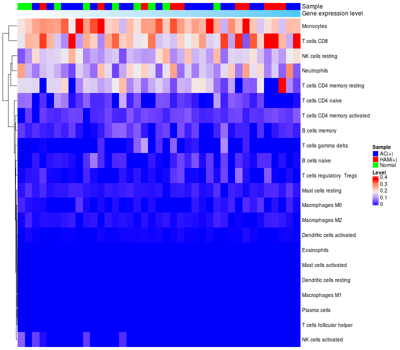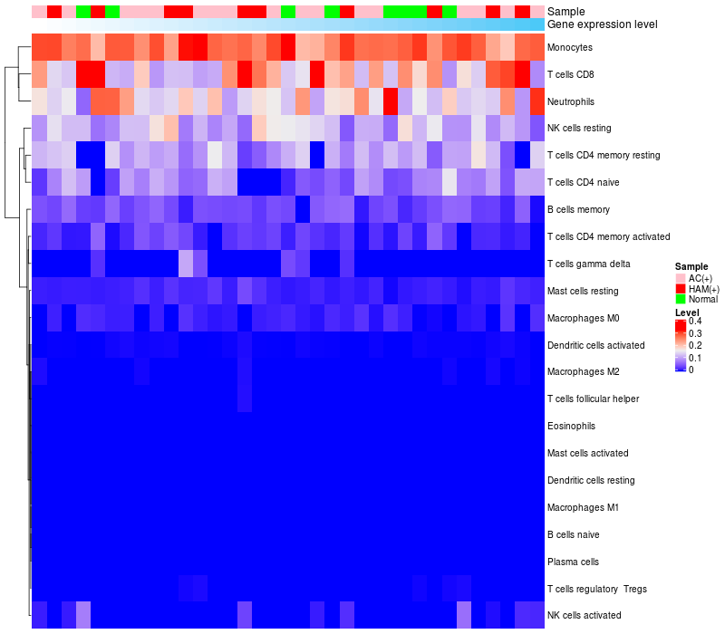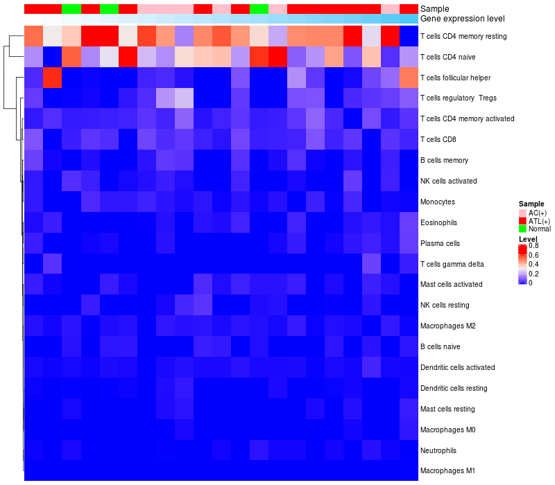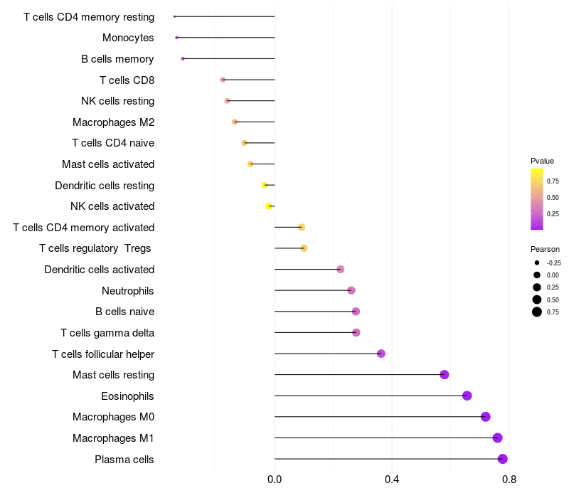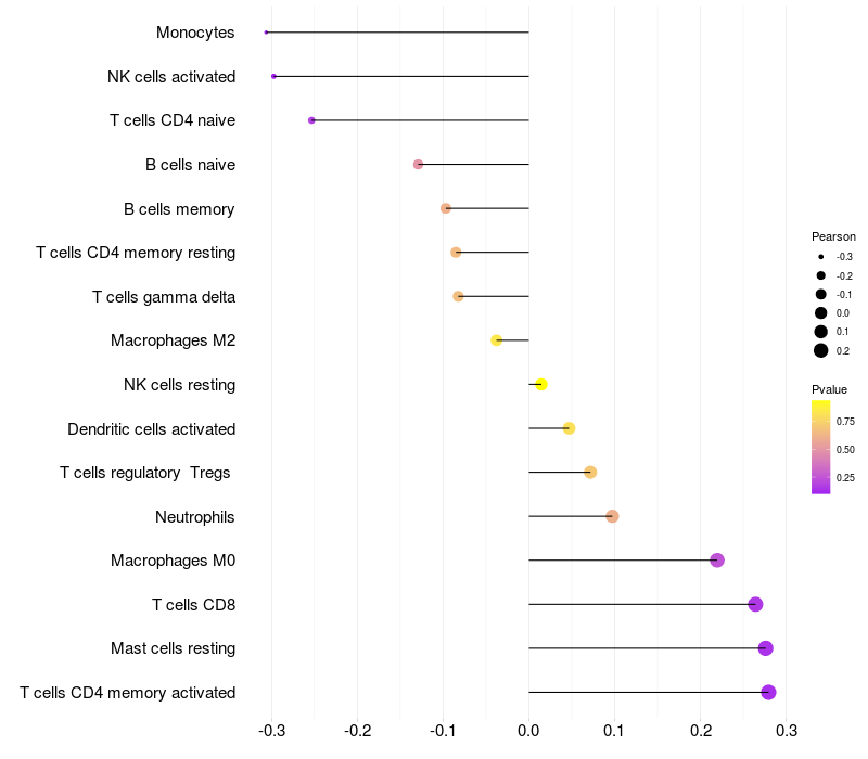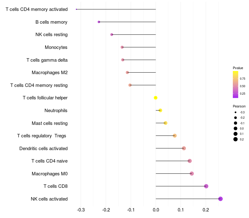 Lollipop of KLHL25 expression and immune infiltrating cell level correlation result in HTLV1+ samples