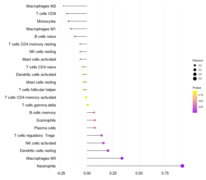 Relationship between gene expression and immune infiltrating cell level