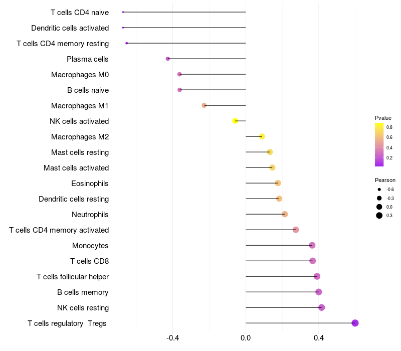 Lollipop of KLHL6 expression and immune infiltrating cell level correlation result in HBV+ Hepatocellular carcinoma samples