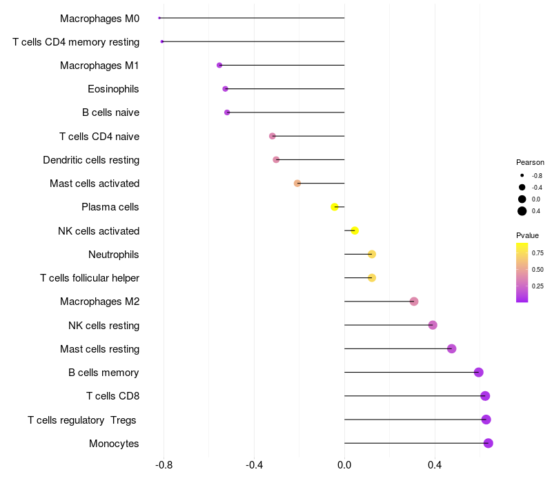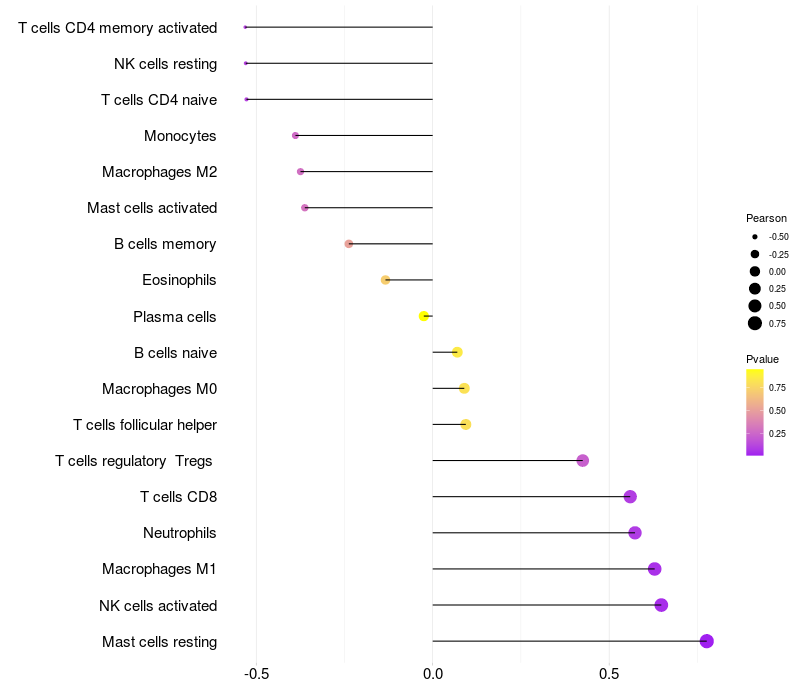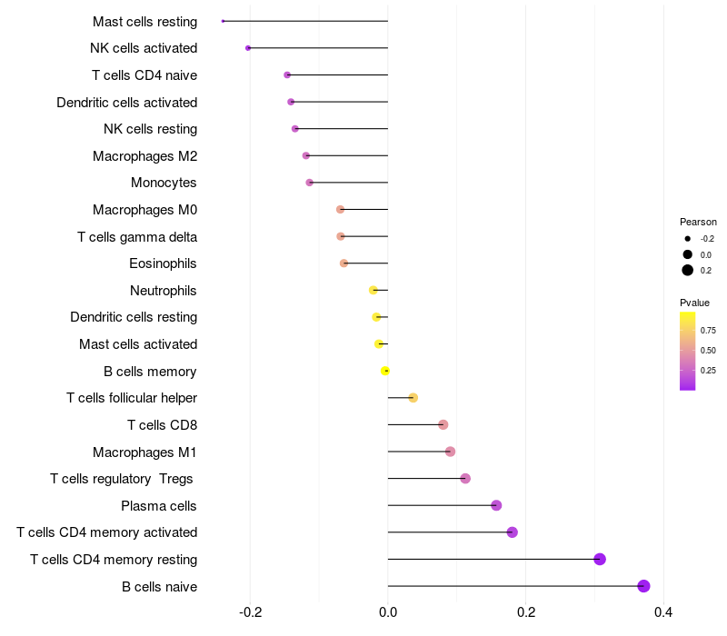 Lollipop of KLHL6 expression and immune infiltrating cell level correlation result in HBV+ Liver cirrhosis samples