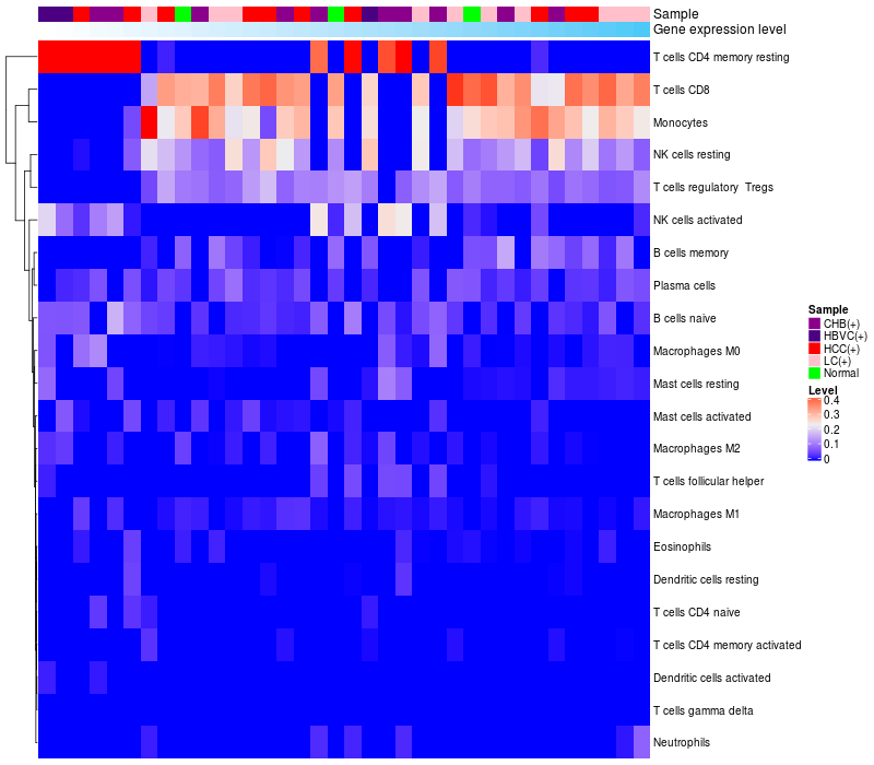Liver hepatocellular carcinoma HCV (HBV+)(86), Liver hepatocellular carcinoma HCV (HBV-)(19), Liver hepatocellular carcinoma (HBV+)(209), Liver hepatocellular carcinoma (HBV+)(60), Paracancerous HCV (HBV+)(4), Paracancerous (HBV-)(28), Paracancerous (HBV+)(18) |