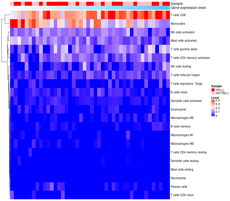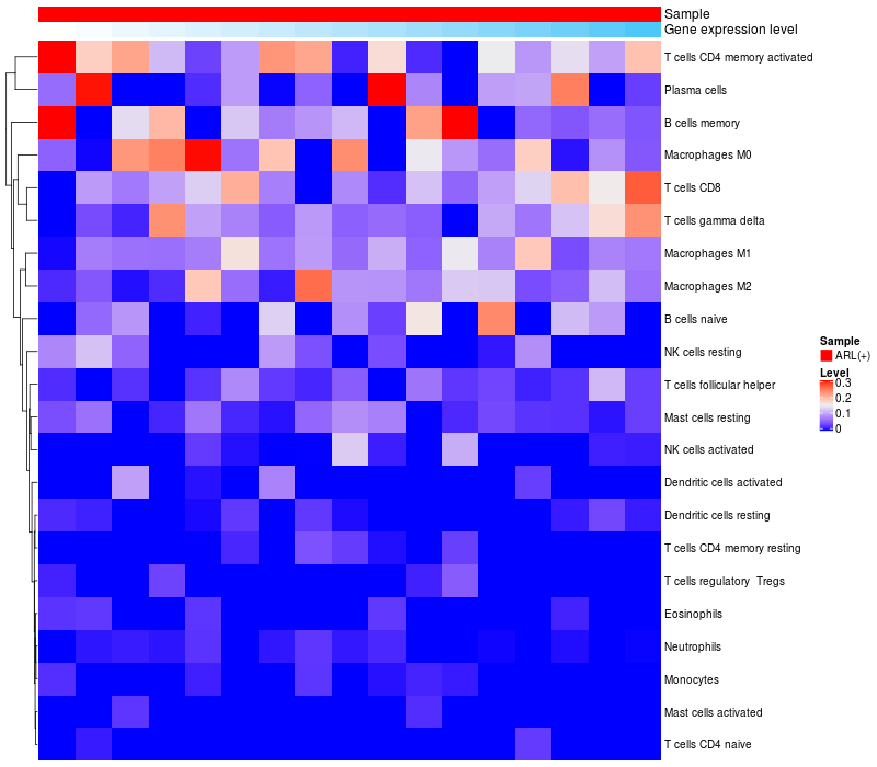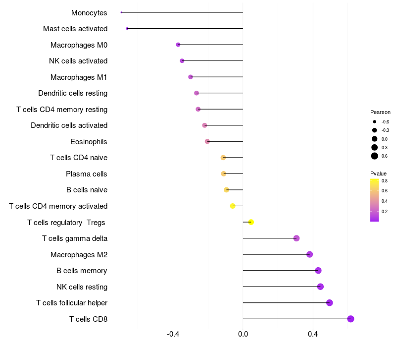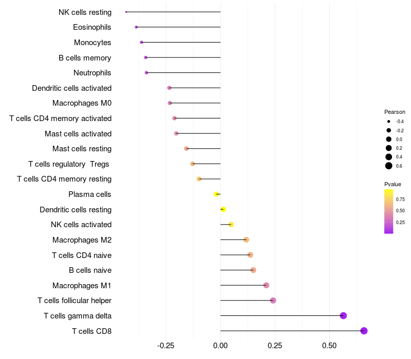Relationship between gene expression and immune infiltrating cell level