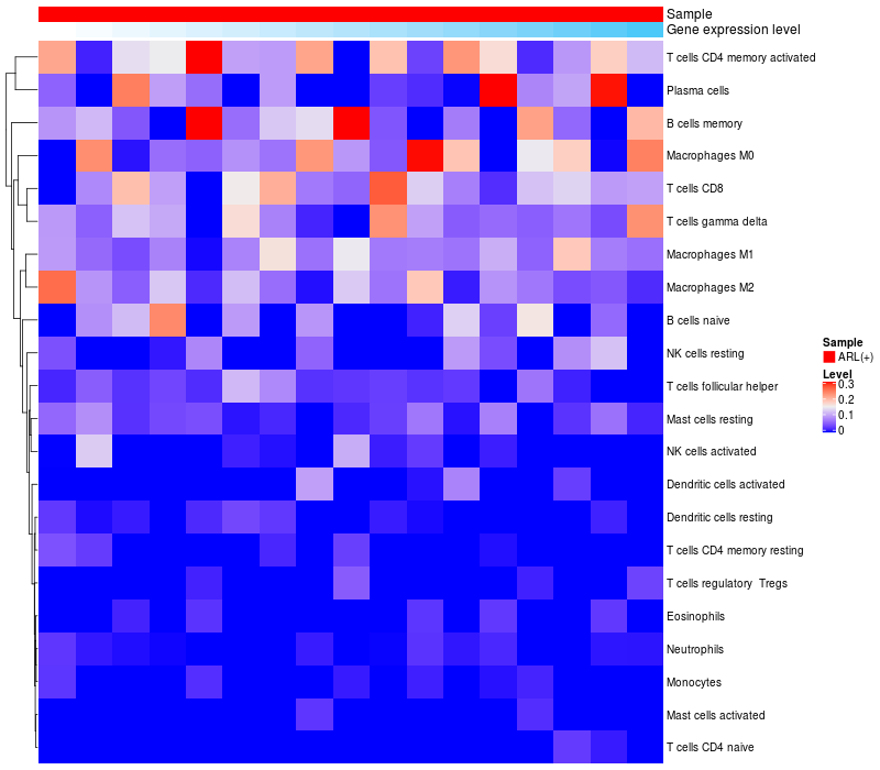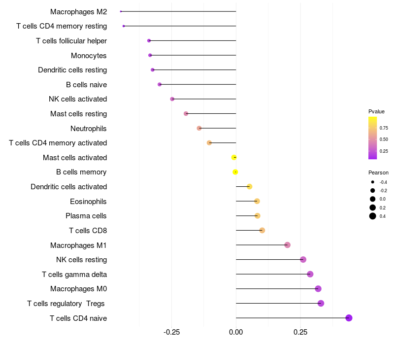 Relationship between gene expression and immune infiltrating cell level