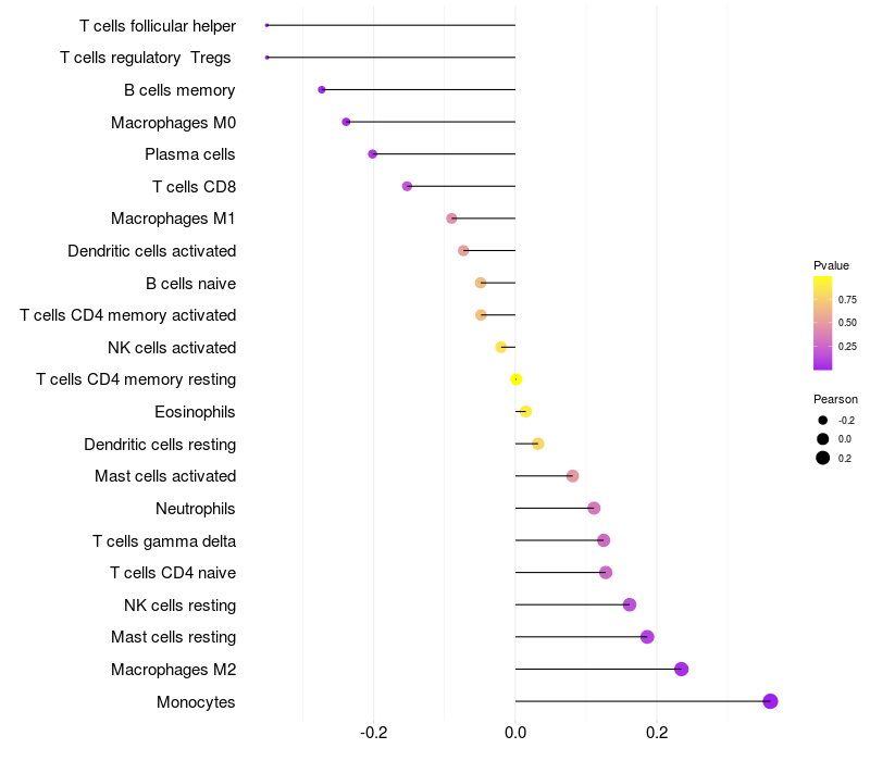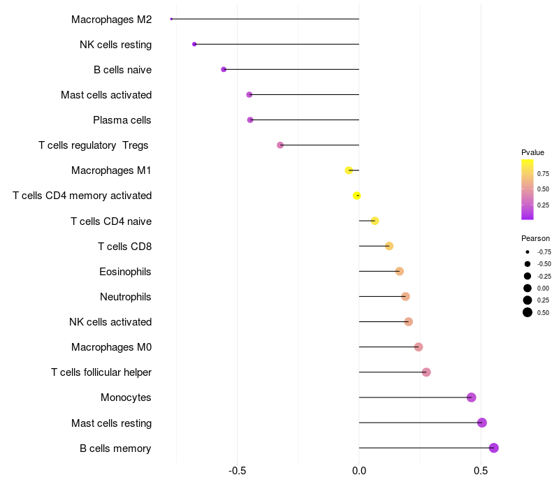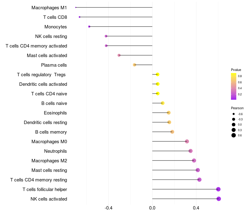 Lollipop of KPNA1 expression and immune infiltrating cell level correlation result in HBV+ samples
