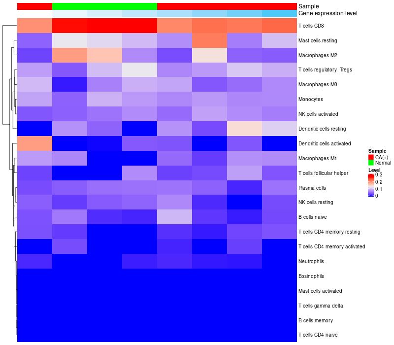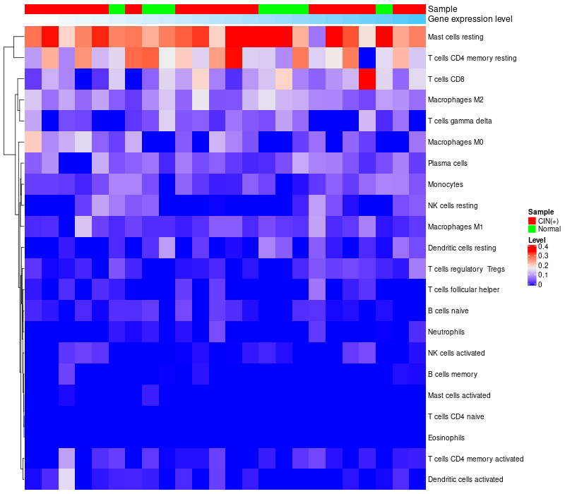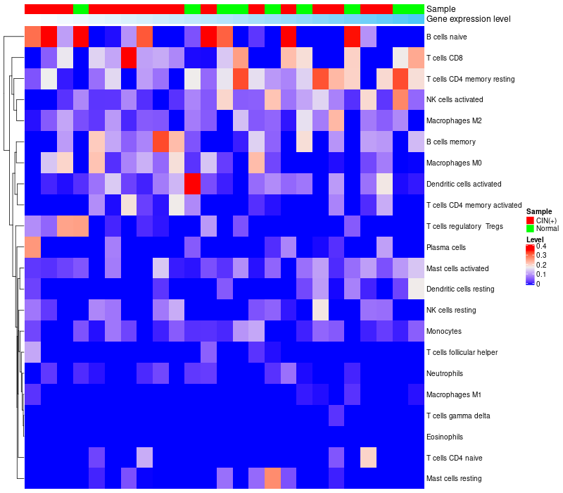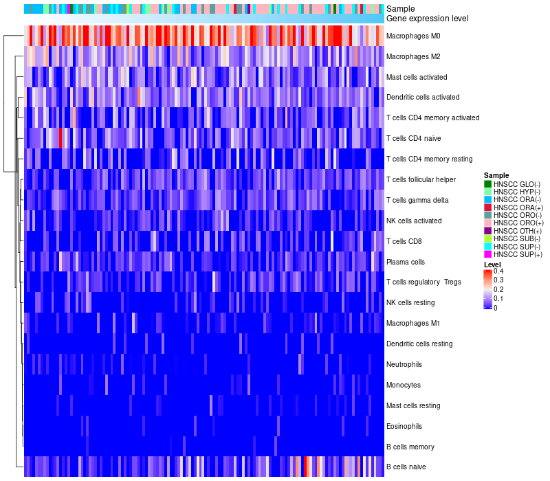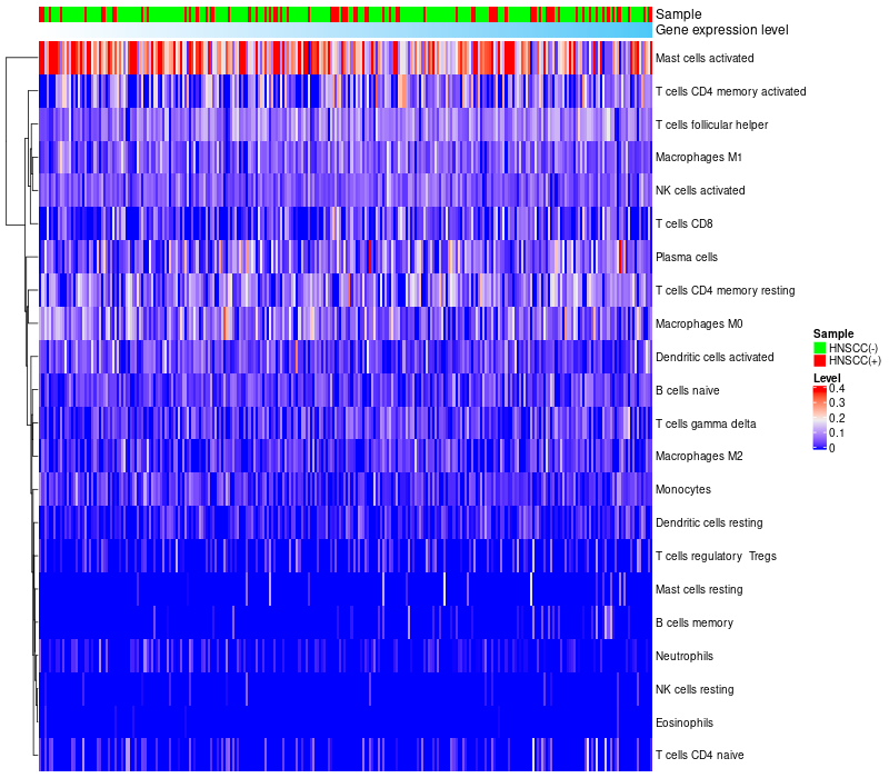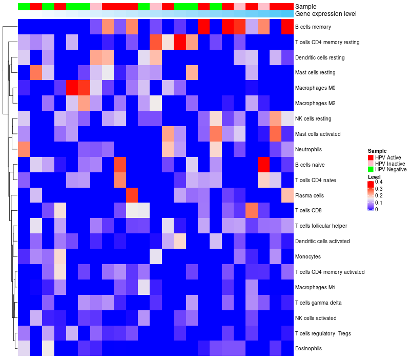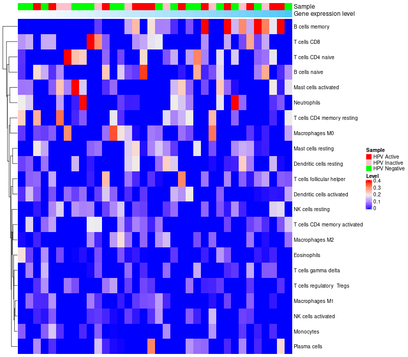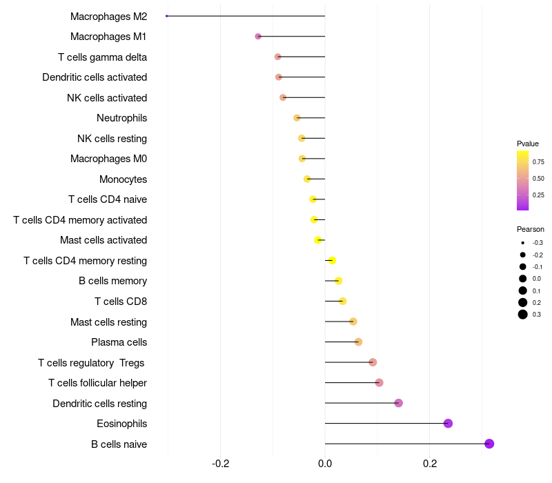 Lollipop of KRCC1 expression and immune infiltrating cell level correlation result in HPV+ samples