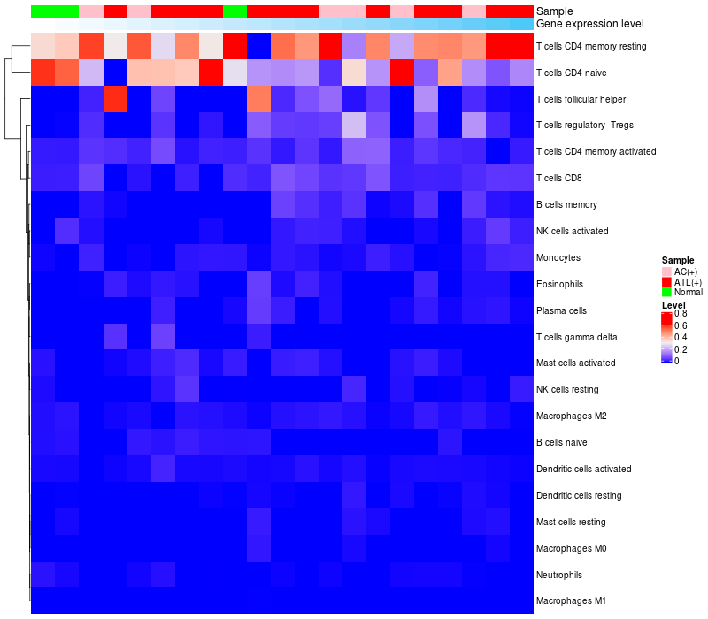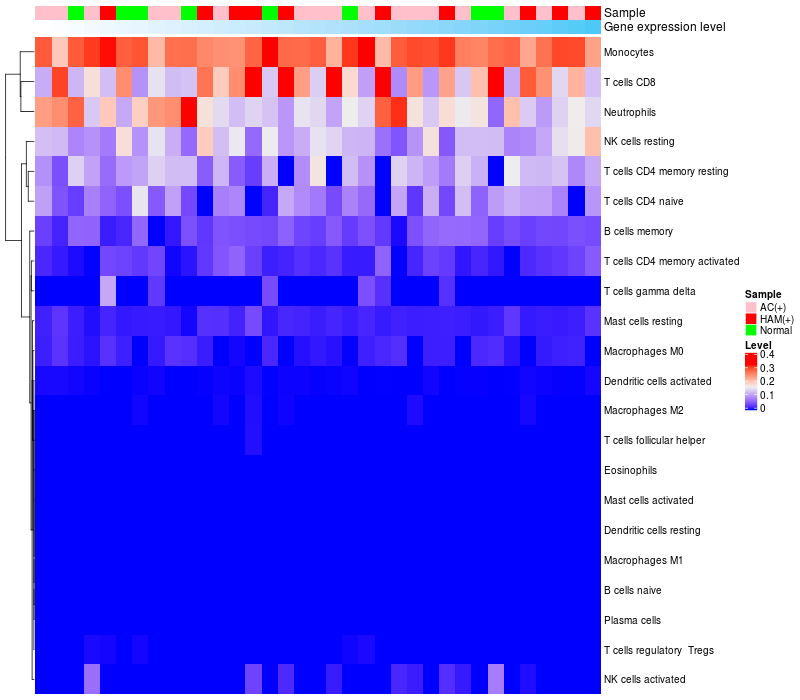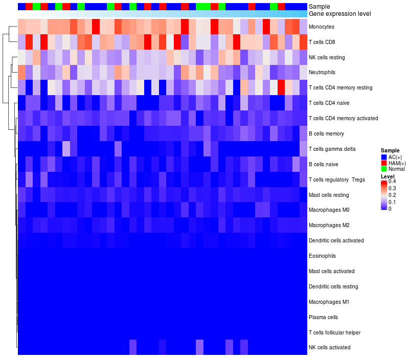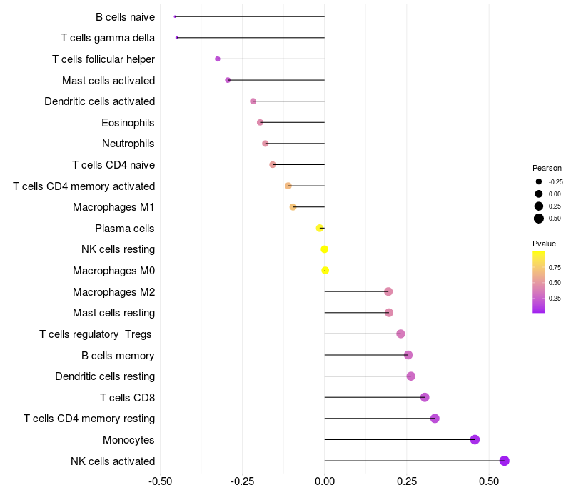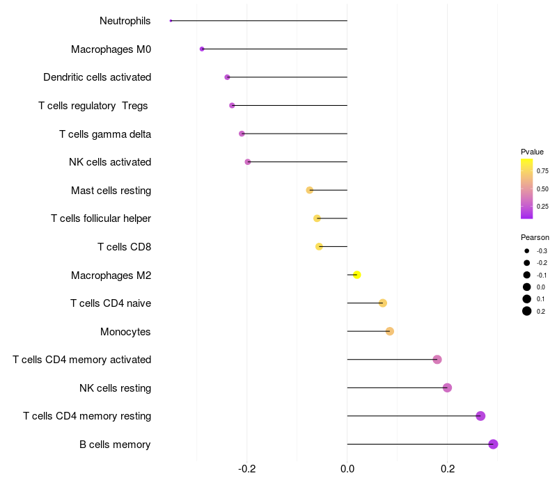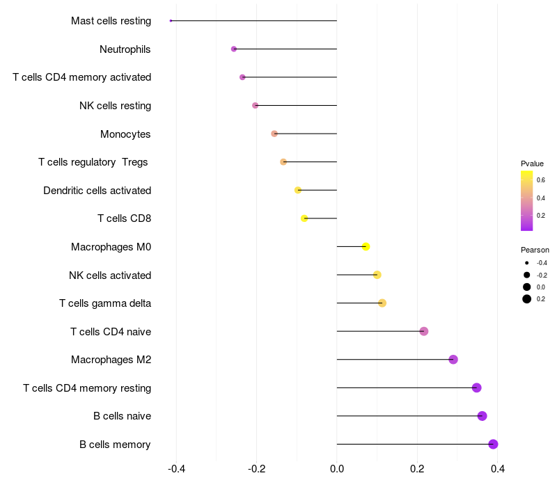 Relationship between gene expression and immune infiltrating cell level