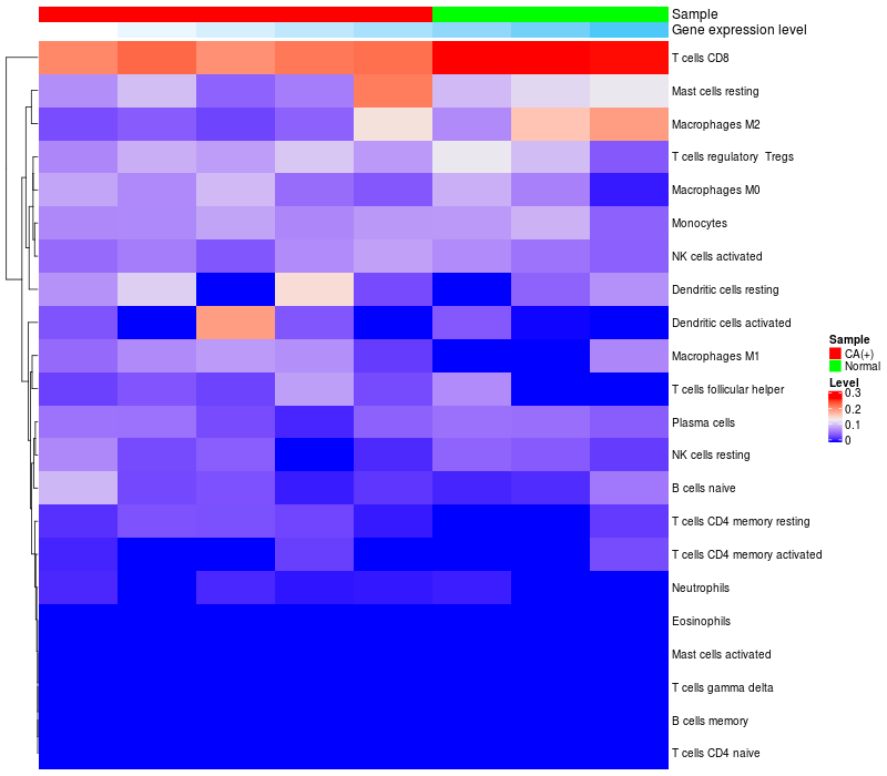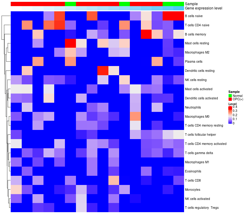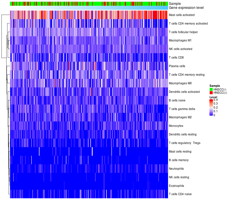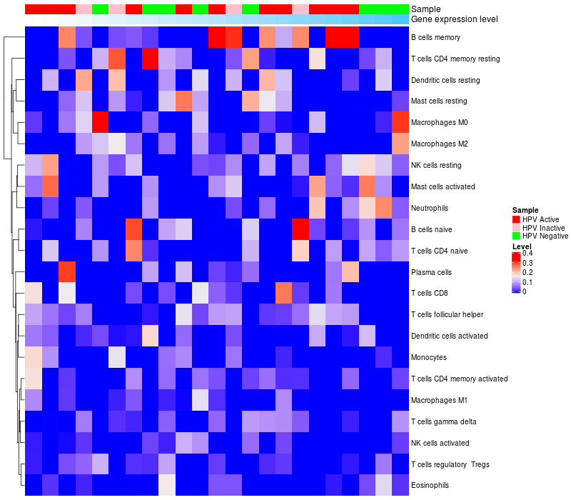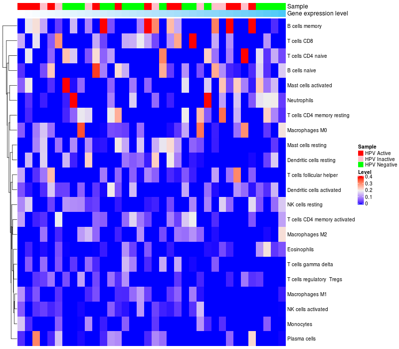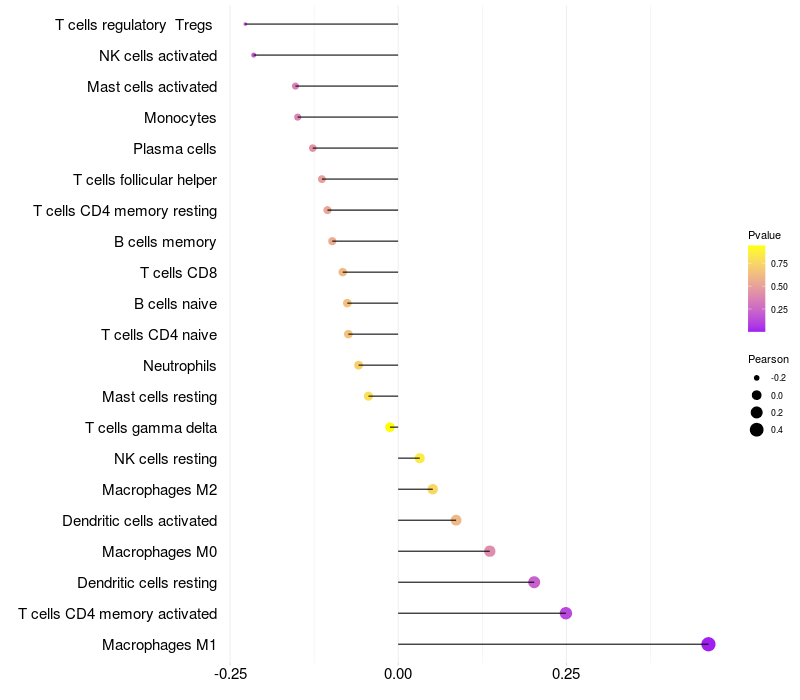 Lollipop of L1CAM expression and immune infiltrating cell level correlation result in HPV+ samples
