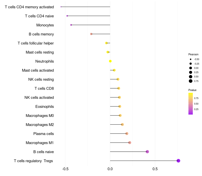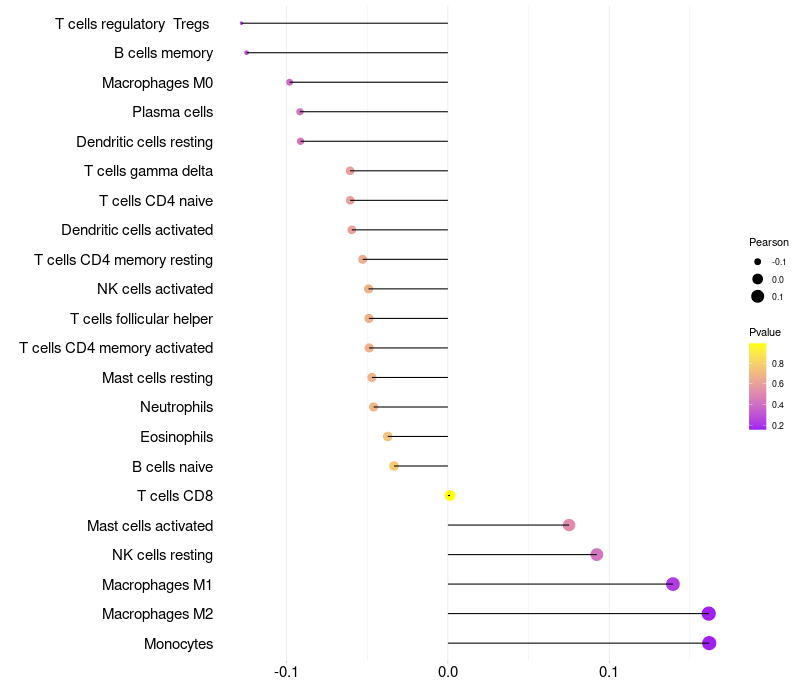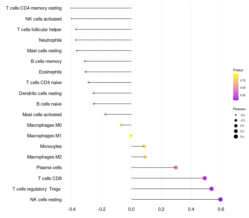Lollipop of LCE3A expression and immune infiltrating cell level correlation result in HBV+ Chronic HBV (CHB) infection samples