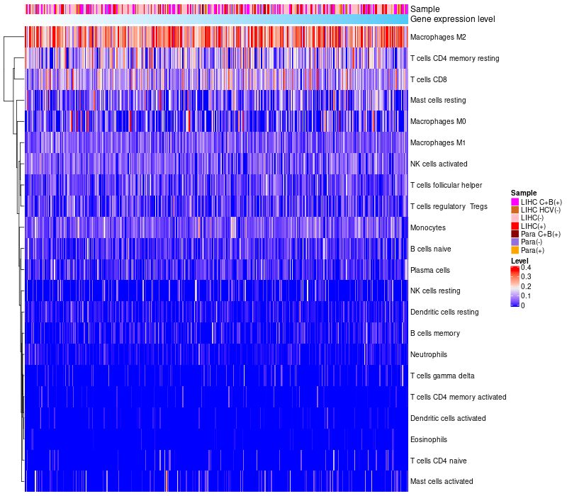 Relationship between gene expression and immune infiltrating cell level