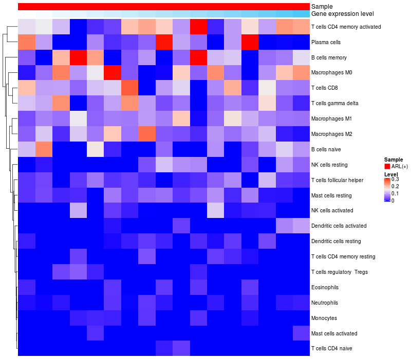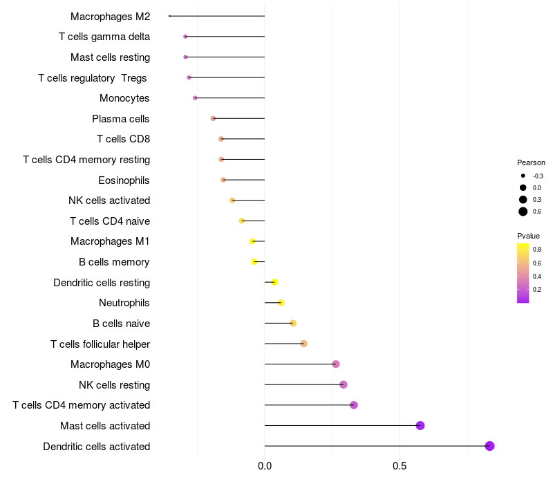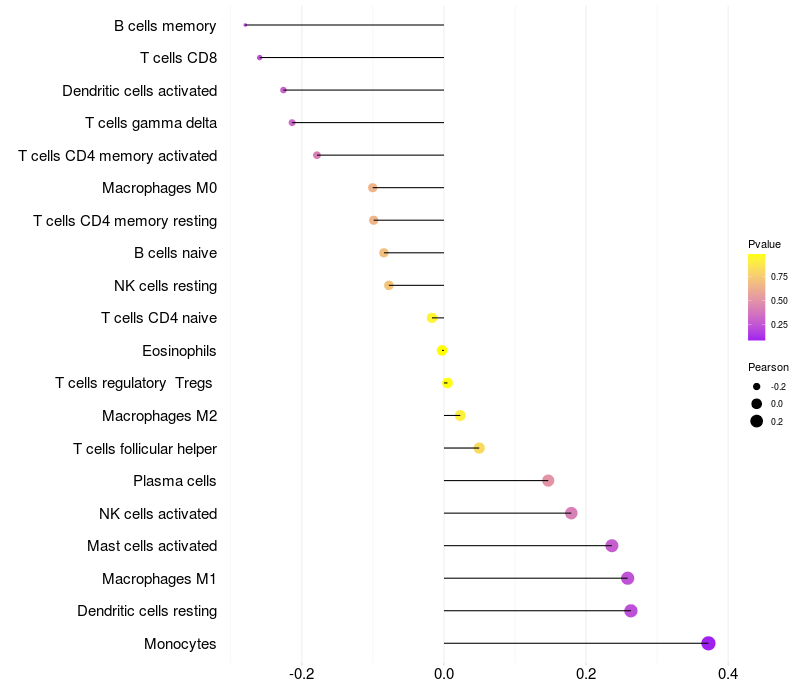Relationship between gene expression and immune infiltrating cell level