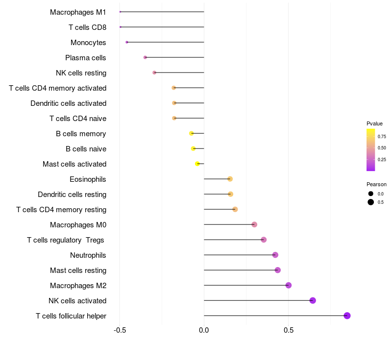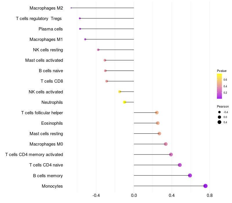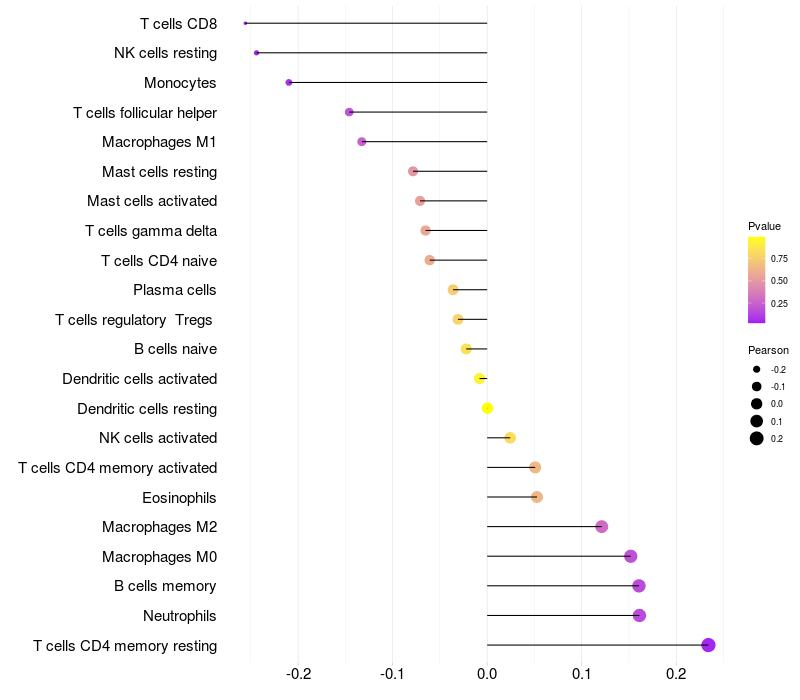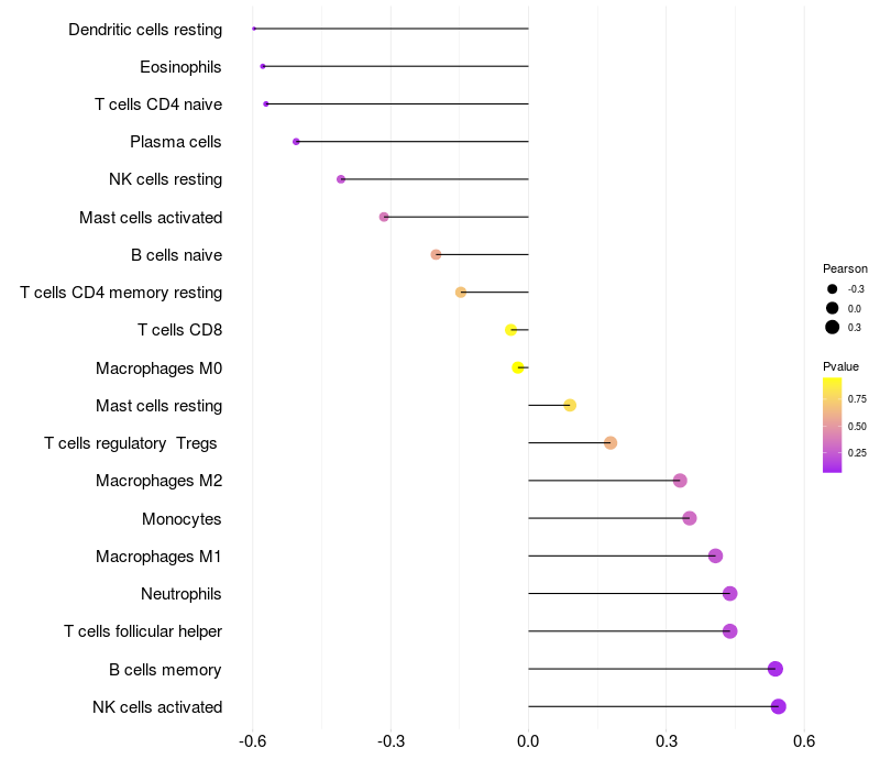 Lollipop of LDLRAD3 expression and immune infiltrating cell level correlation result in HBV+ Liver cirrhosis samples