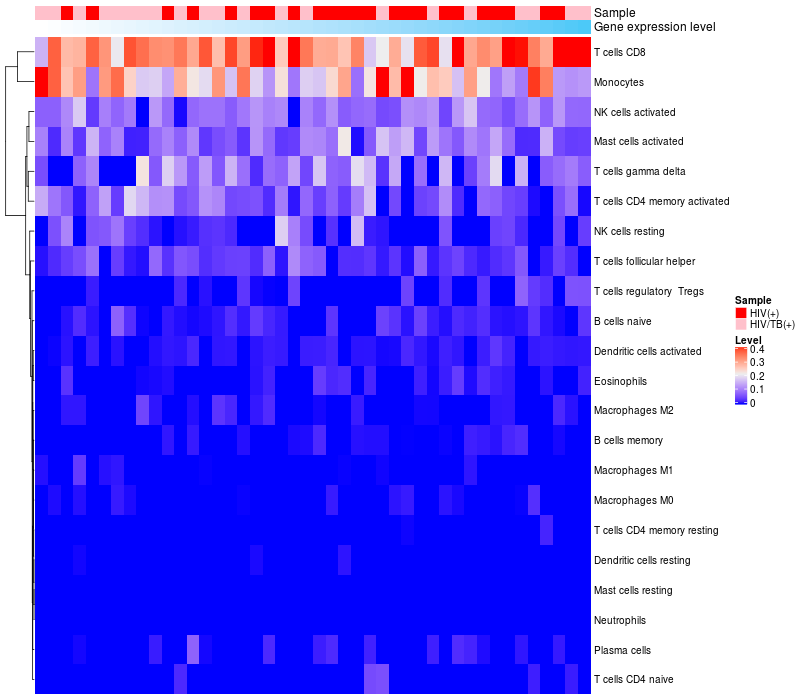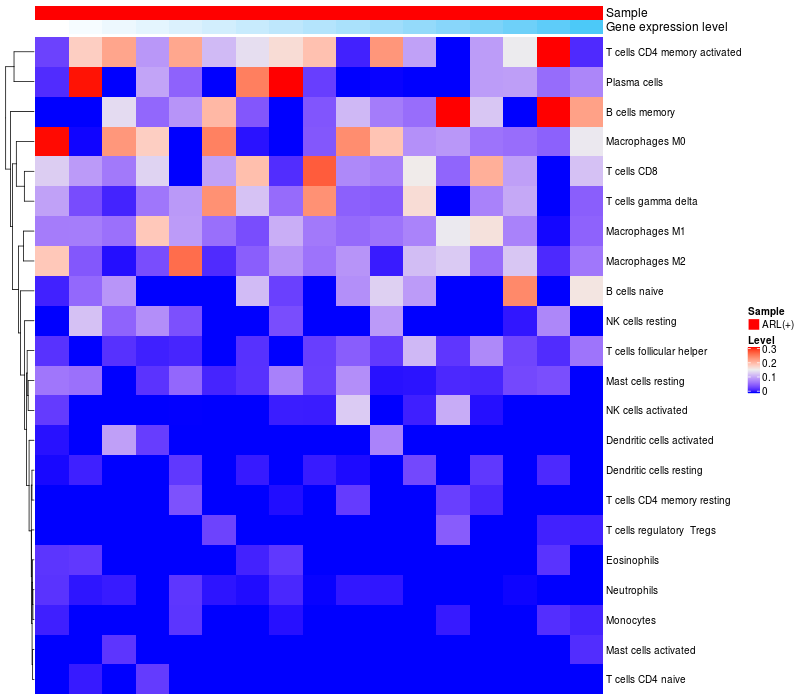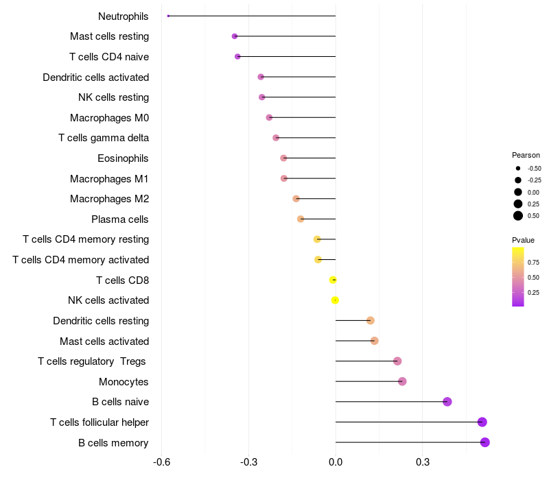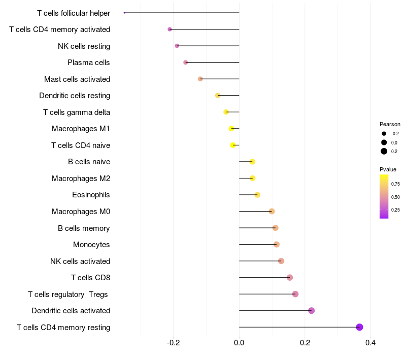 Relationship between gene expression and immune infiltrating cell level