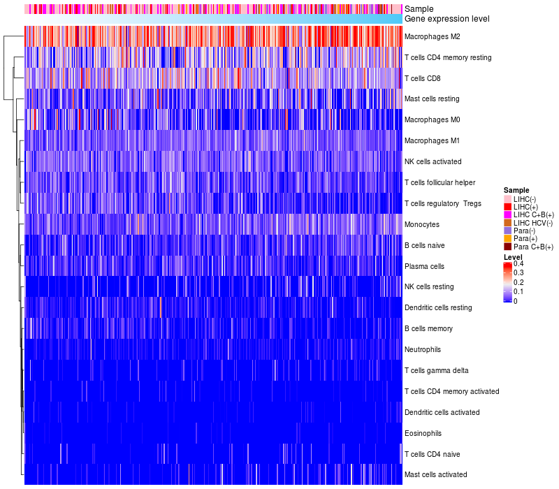 Relationship between gene expression and immune infiltrating cell level