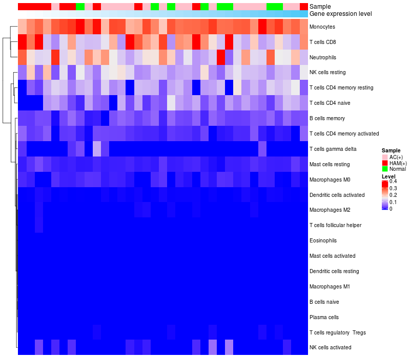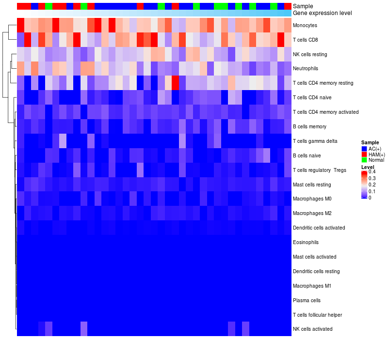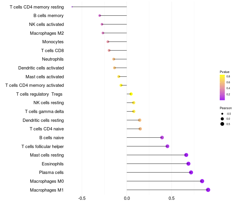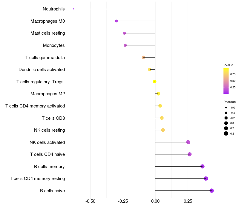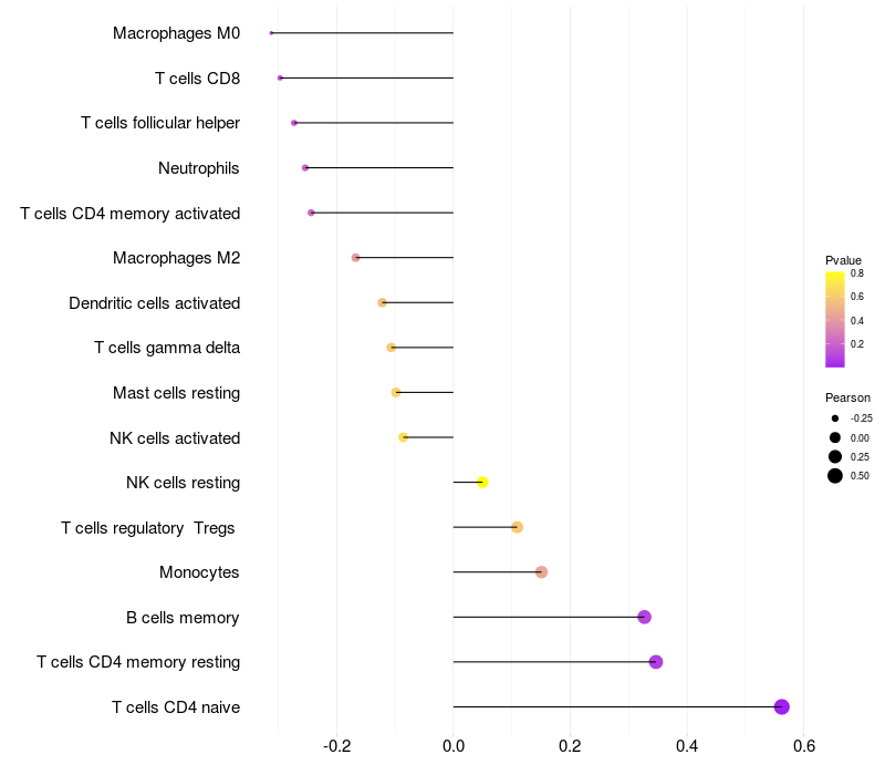 Relationship between gene expression and immune infiltrating cell level