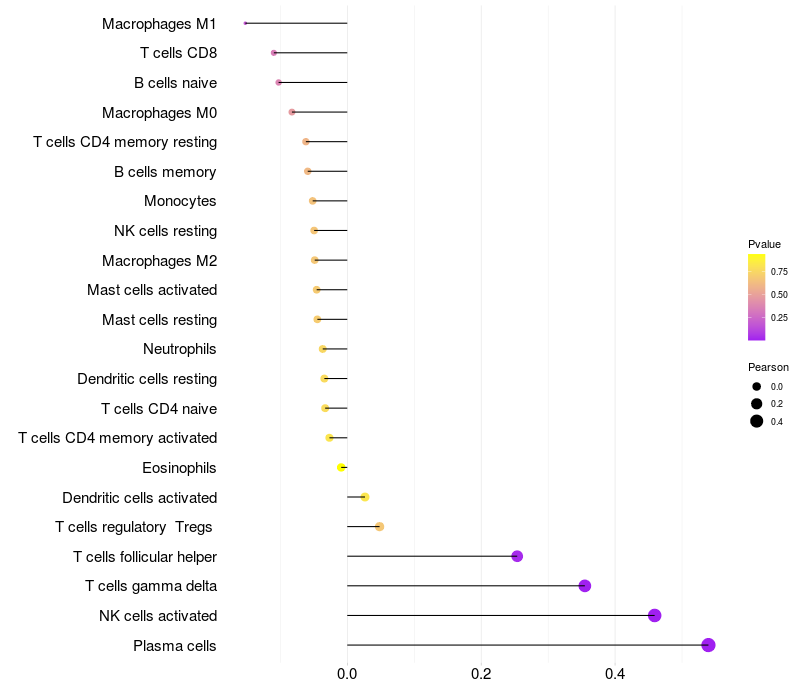 Lollipop of LHCGR expression and immune infiltrating cell level correlation result in HBV+ samples