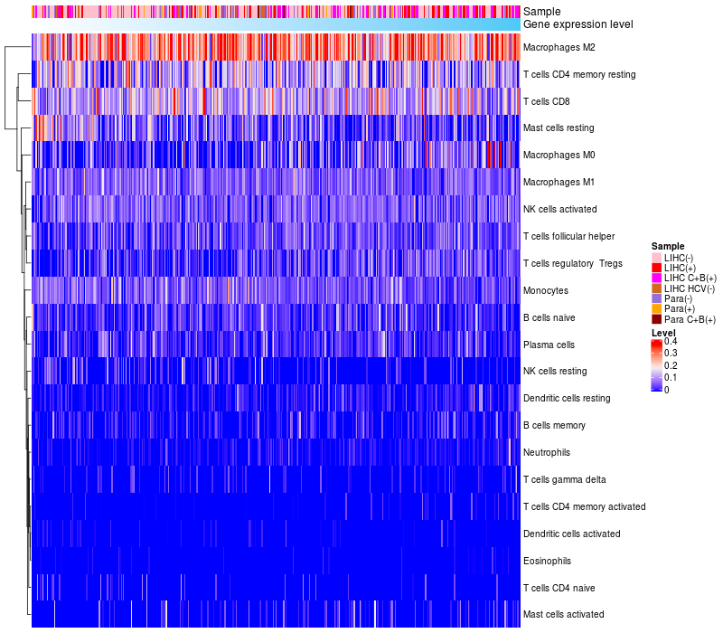Relationship between gene expression and immune infiltrating cell level