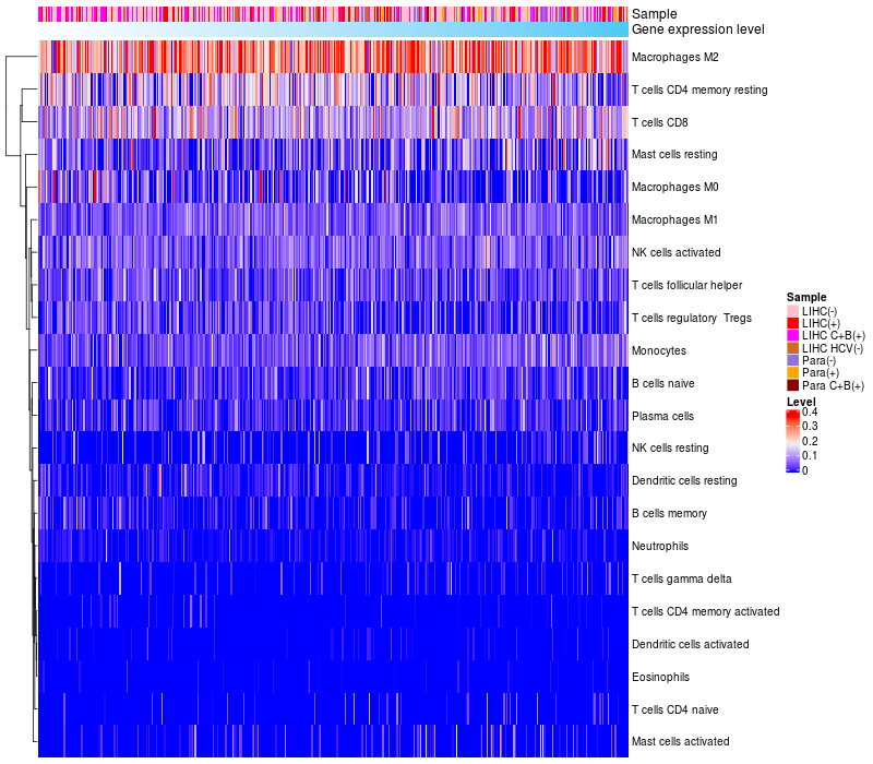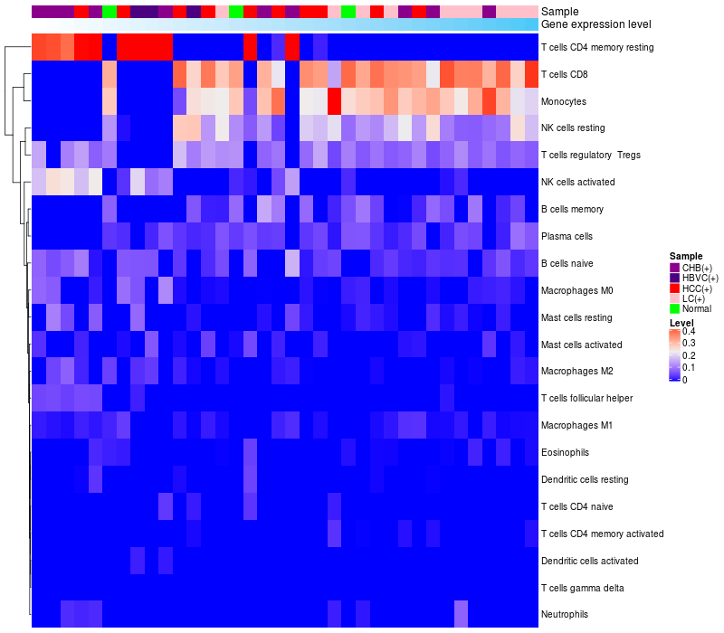 Liver hepatocellular carcinoma HCV (HBV+)(86), Liver hepatocellular carcinoma HCV (HBV-)(19), Liver hepatocellular carcinoma (HBV+)(209), Liver hepatocellular carcinoma (HBV+)(60), Paracancerous HCV (HBV+)(4), Paracancerous (HBV-)(28), Paracancerous (HBV+)(18) |
