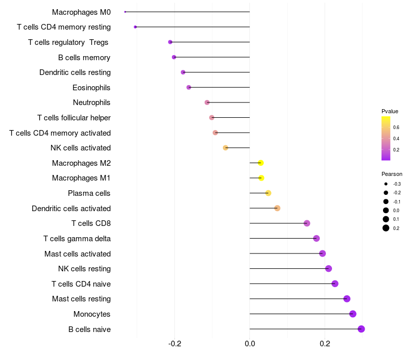 Lollipop of LHPP expression and immune infiltrating cell level correlation result in HBV+ Liver cirrhosis samples