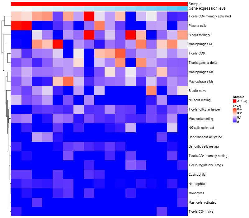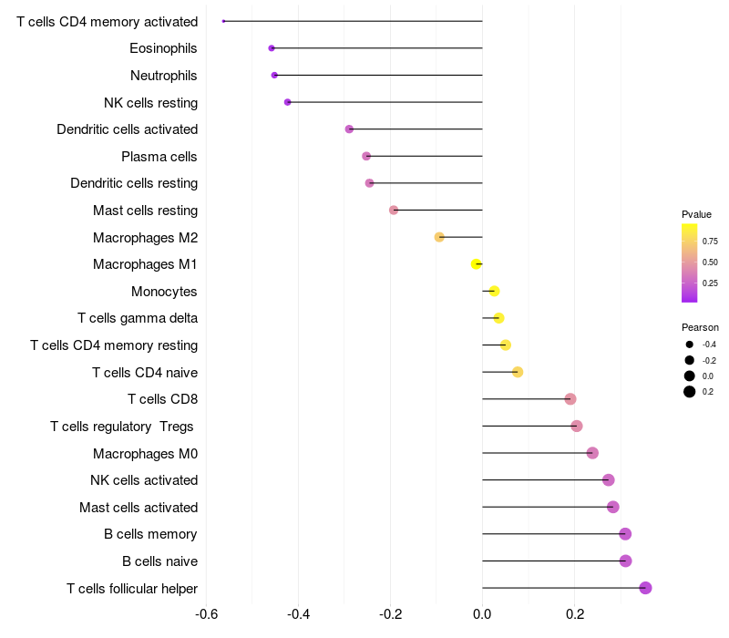 Relationship between gene expression and immune infiltrating cell level