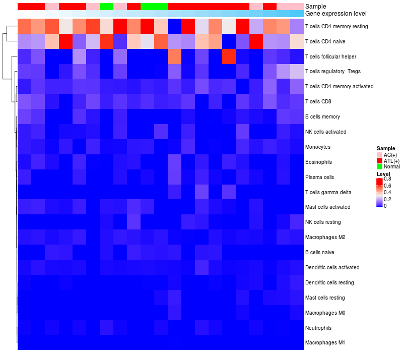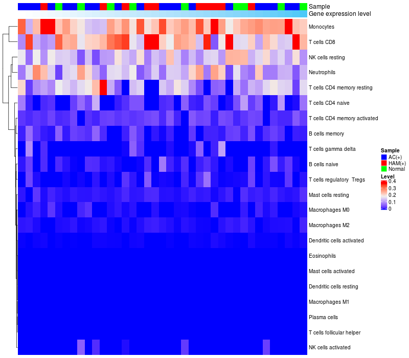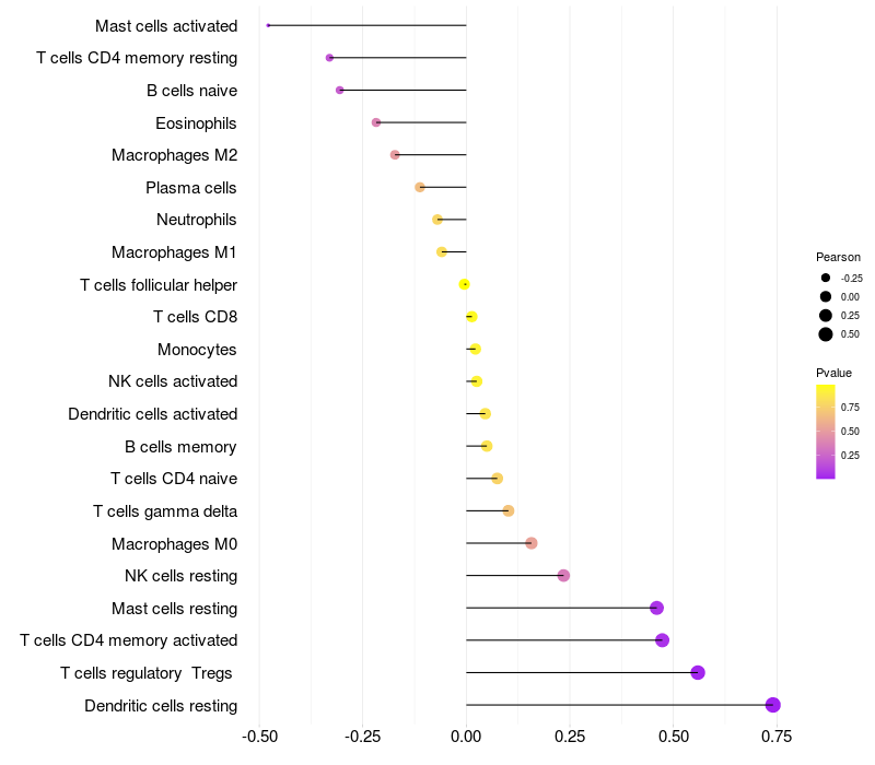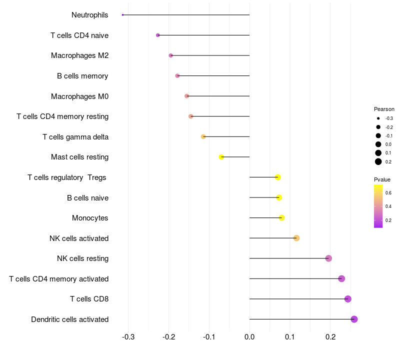 Relationship between gene expression and immune infiltrating cell level