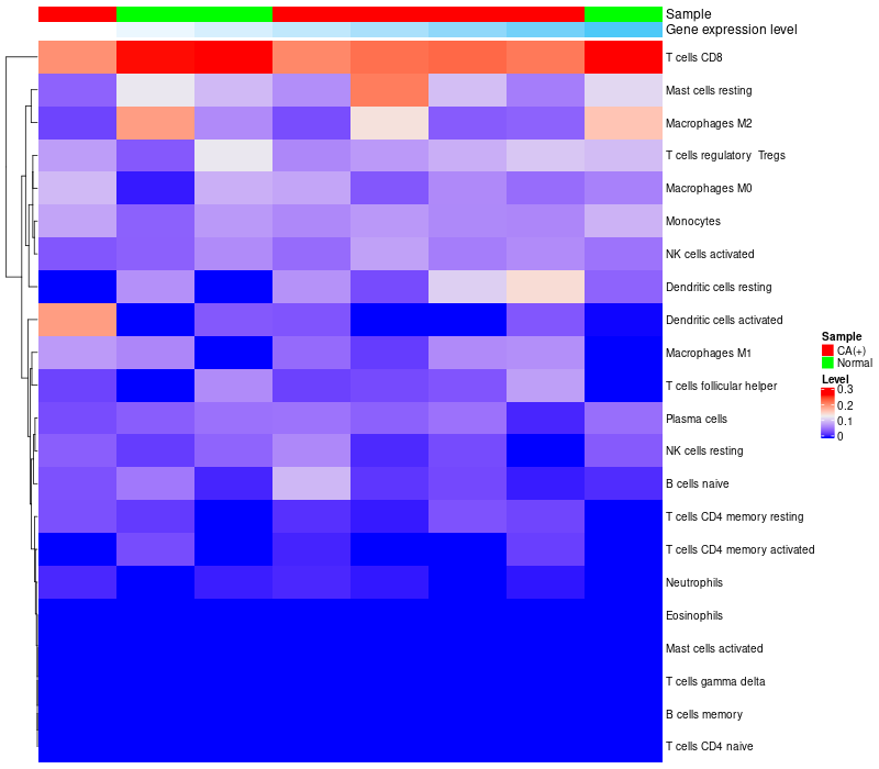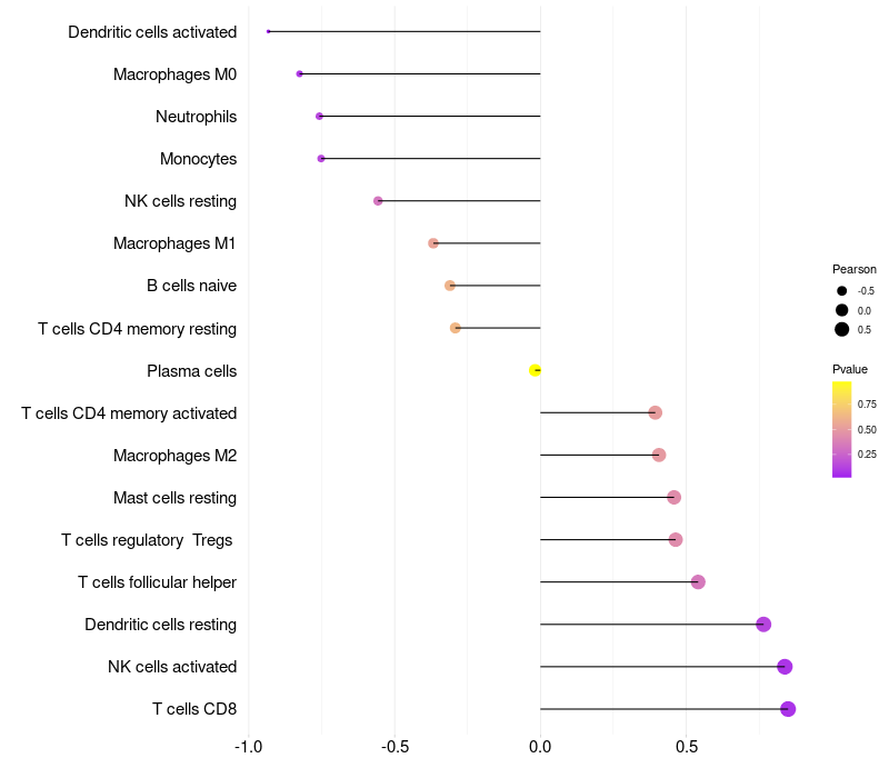 Relationship between gene expression and immune infiltrating cell level