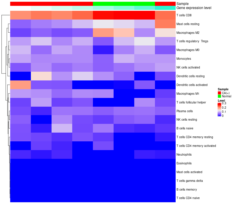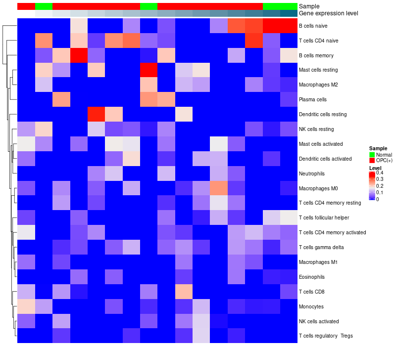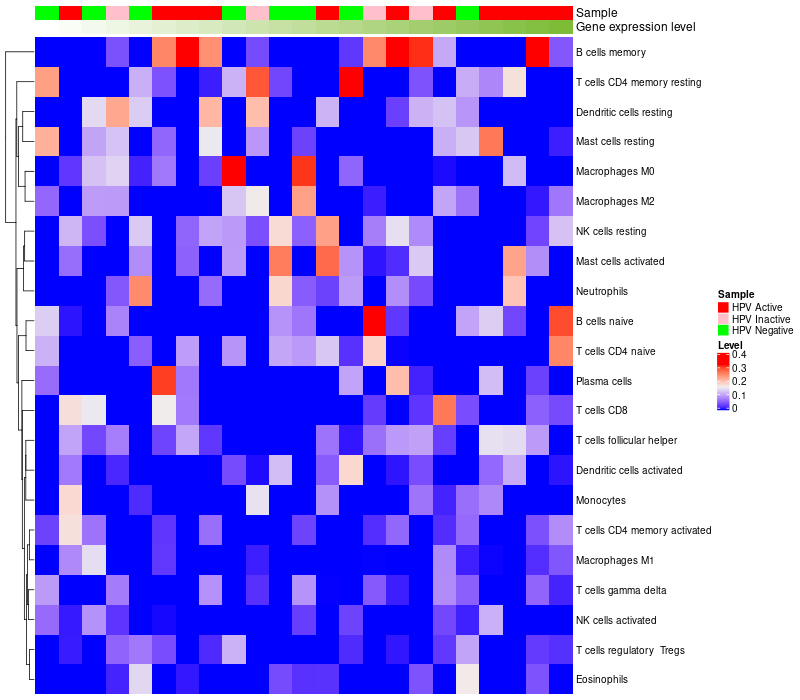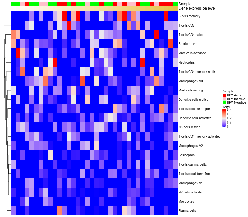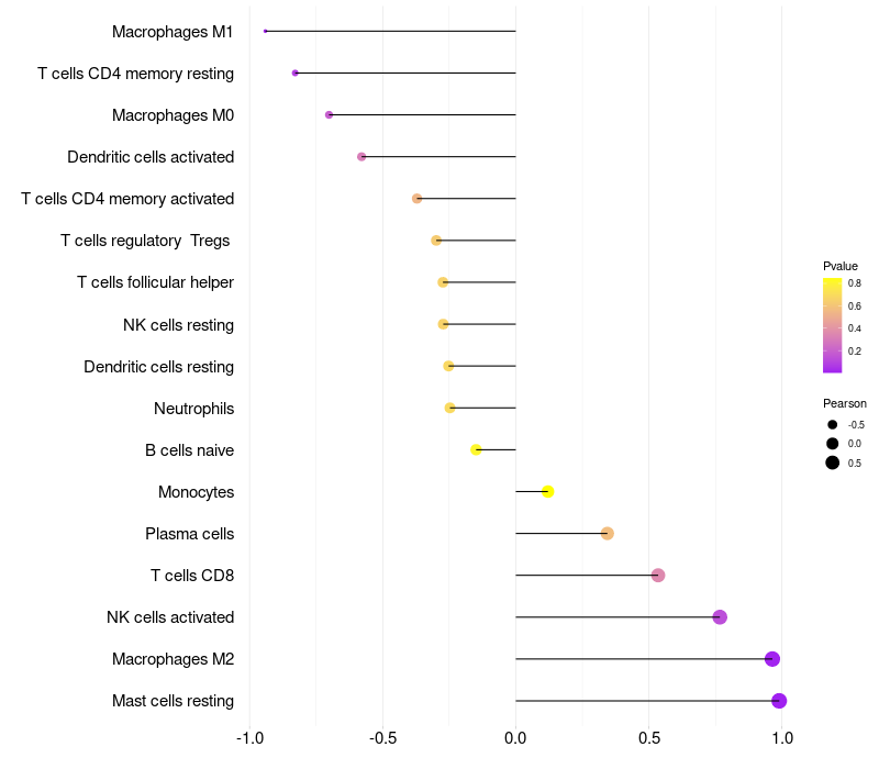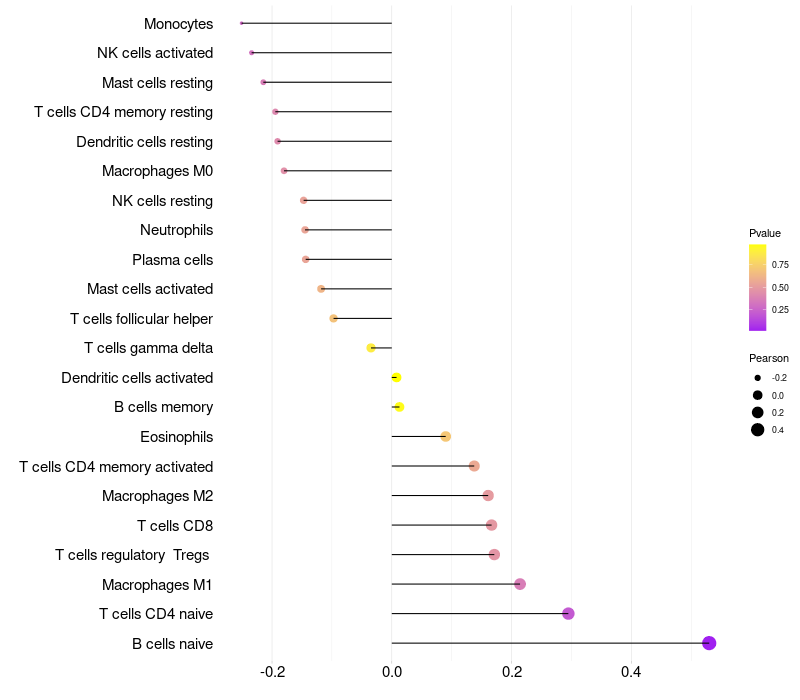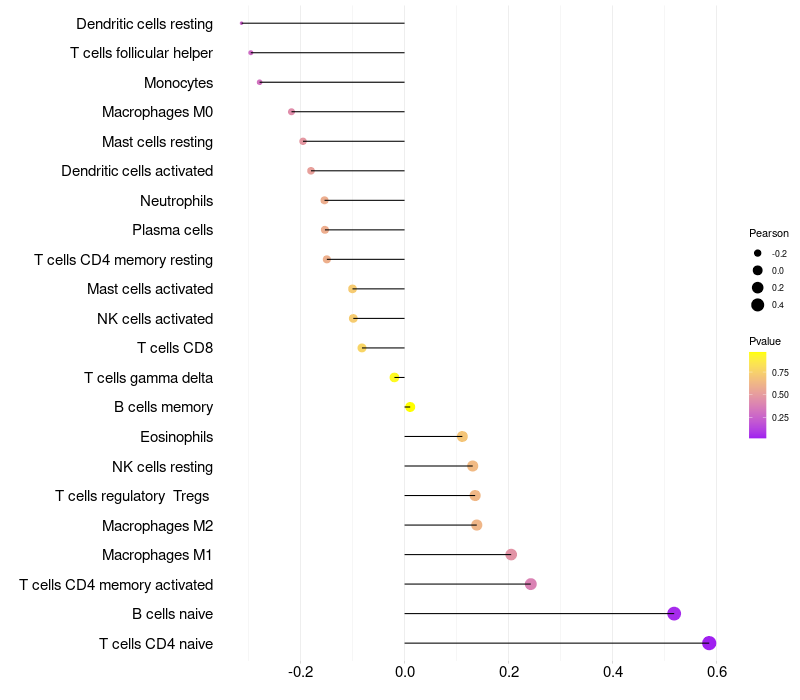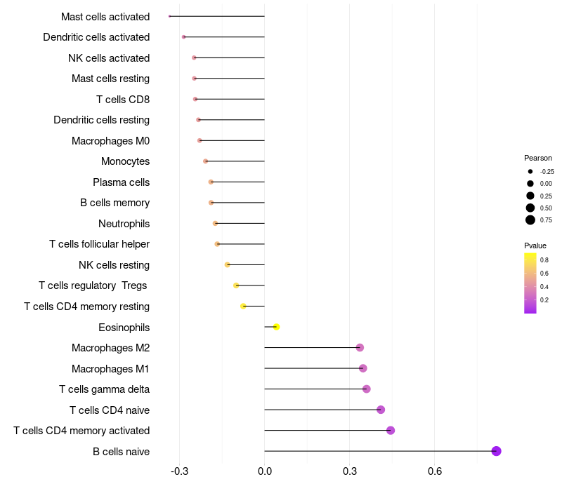 Lollipop of LINC00488 expression and immune infiltrating cell level correlation result in HPV+ samples