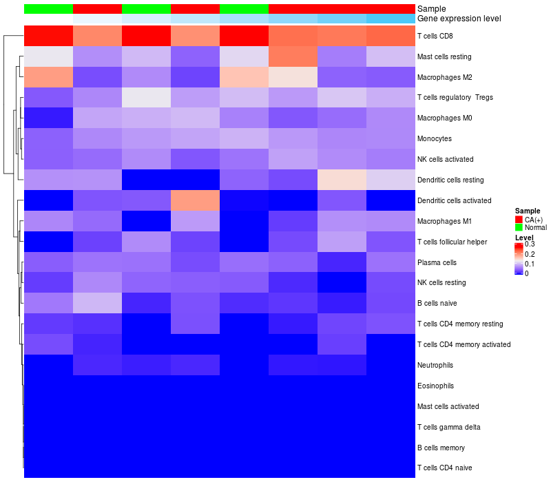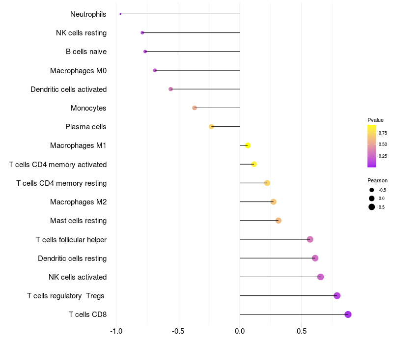 Relationship between gene expression and immune infiltrating cell level