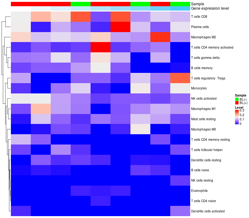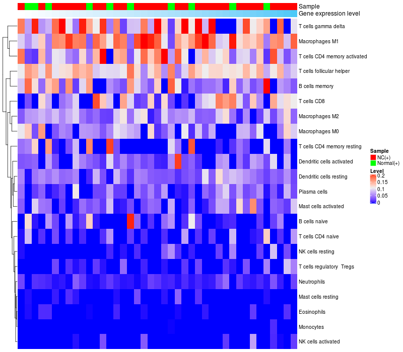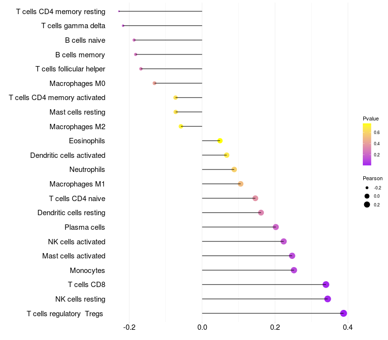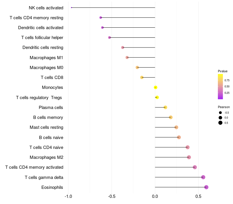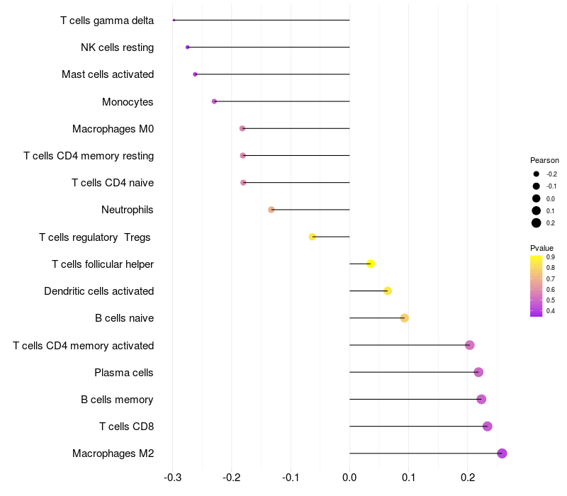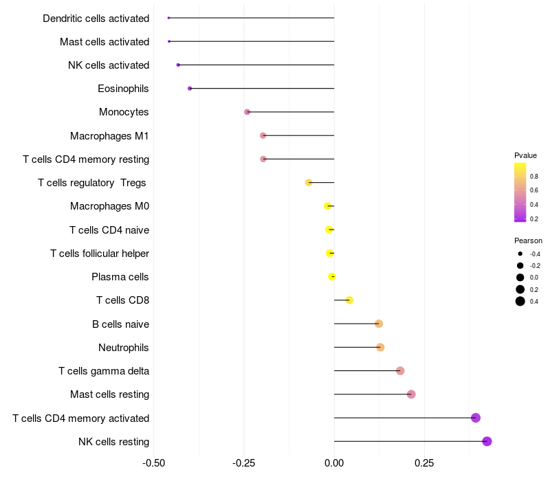 Lollipop of LINC00710 expression and immune infiltrating cell level correlation result in EBV+ samples