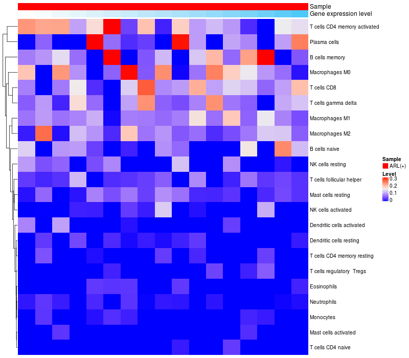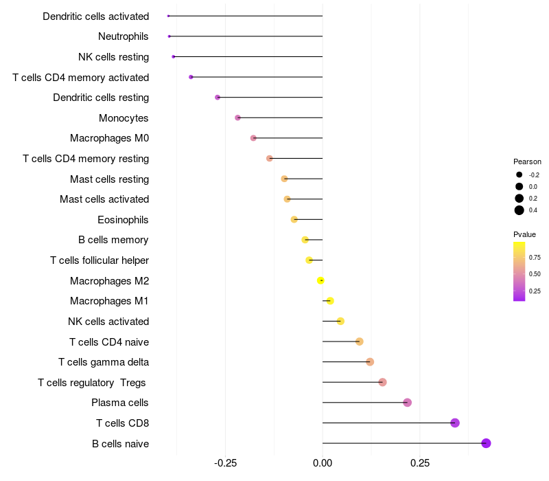 Relationship between gene expression and immune infiltrating cell level
