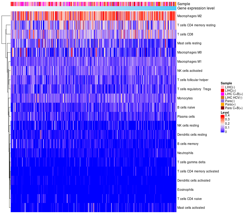 Relationship between gene expression and immune infiltrating cell level
