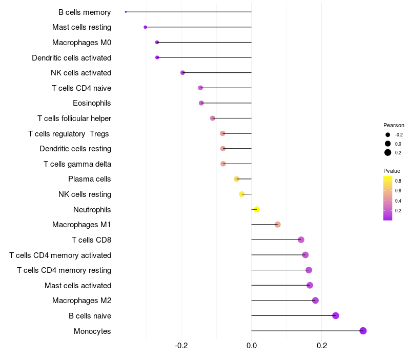 Lollipop of LIPA expression and immune infiltrating cell level correlation result in HBV+ samples