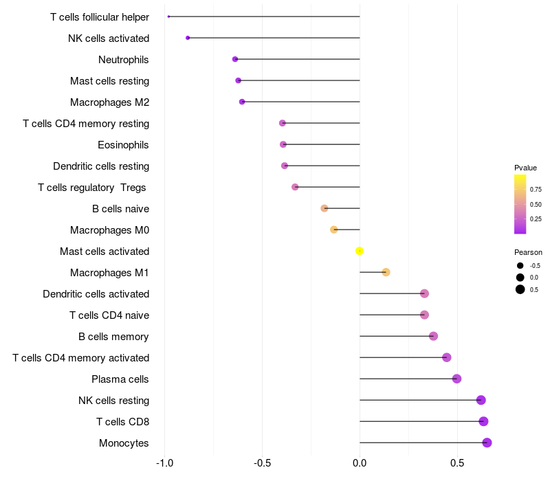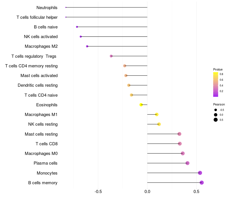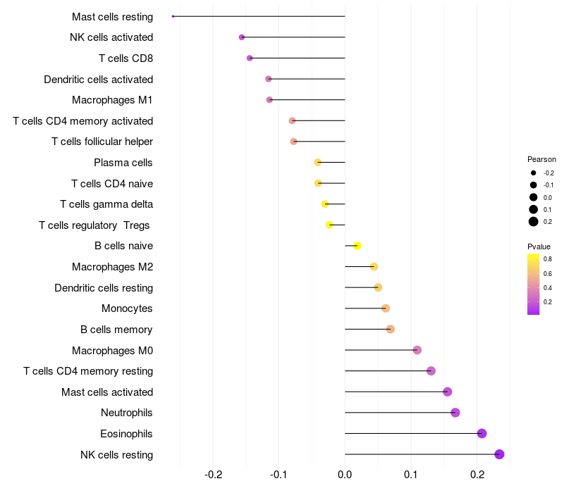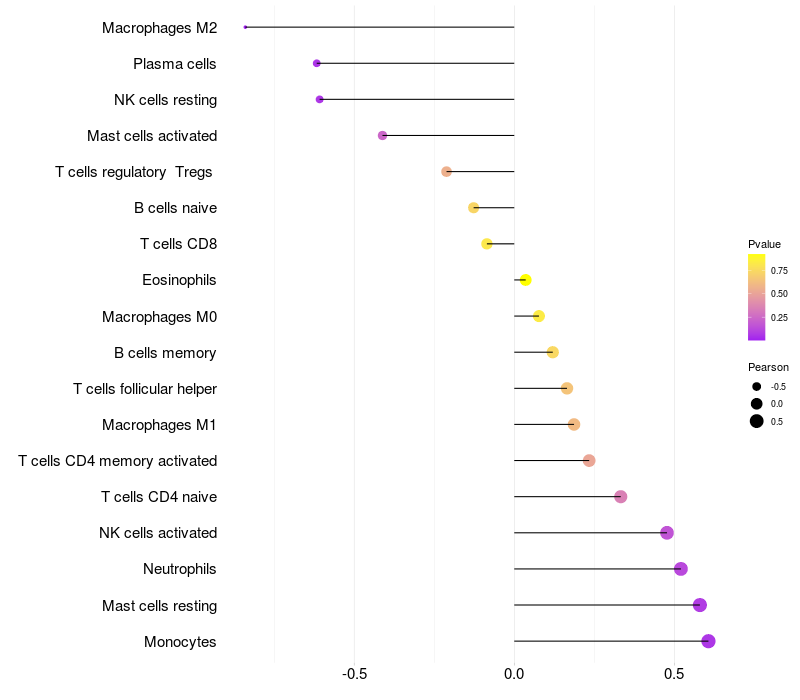 Lollipop of LITAF expression and immune infiltrating cell level correlation result in HBV+ Liver cirrhosis samples