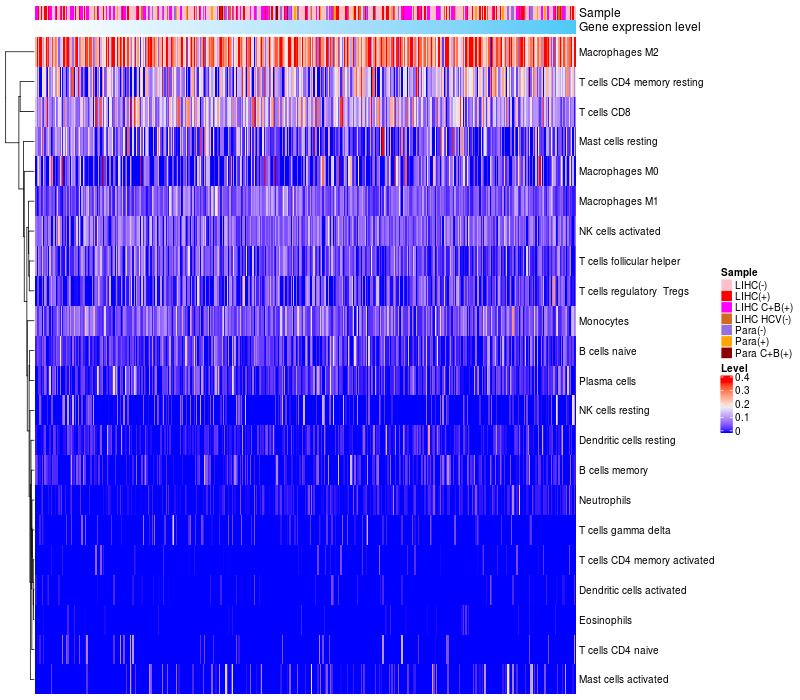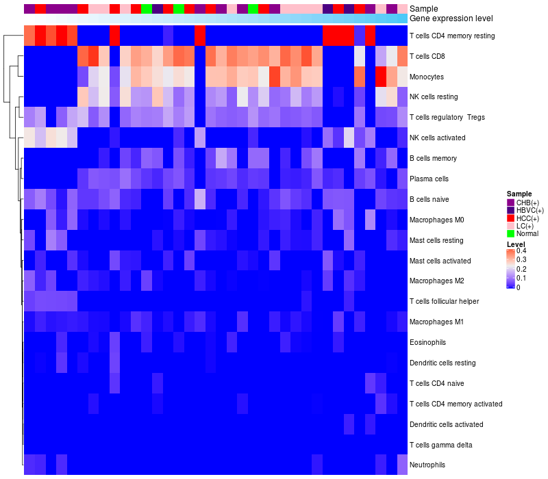 Relationship between gene expression and immune infiltrating cell level