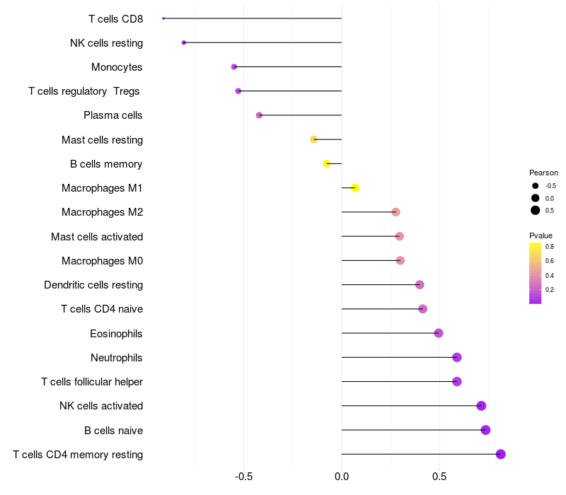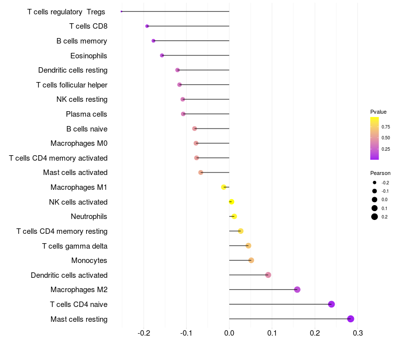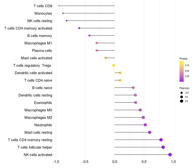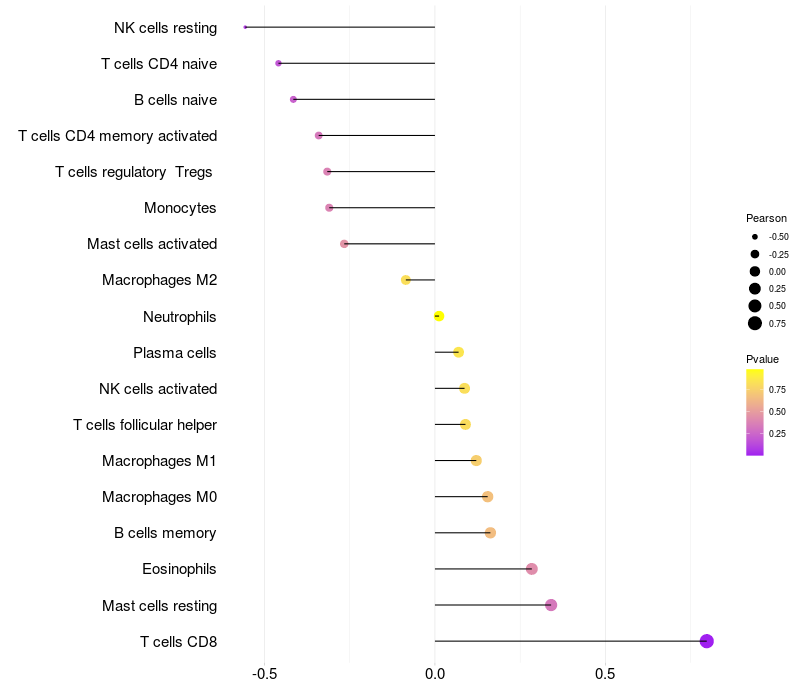 Lollipop of LMBR1 expression and immune infiltrating cell level correlation result in HBV+ Liver cirrhosis samples