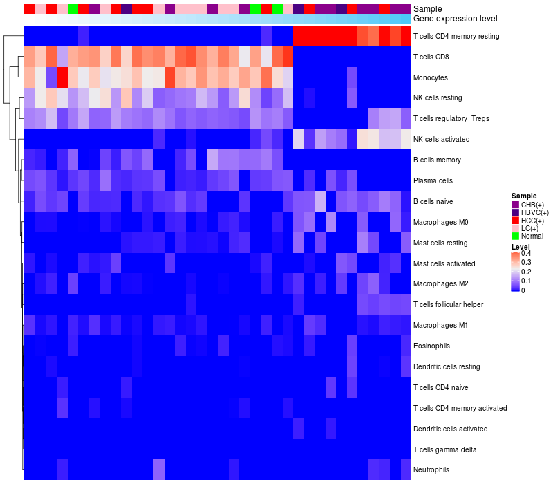 Relationship between gene expression and immune infiltrating cell level